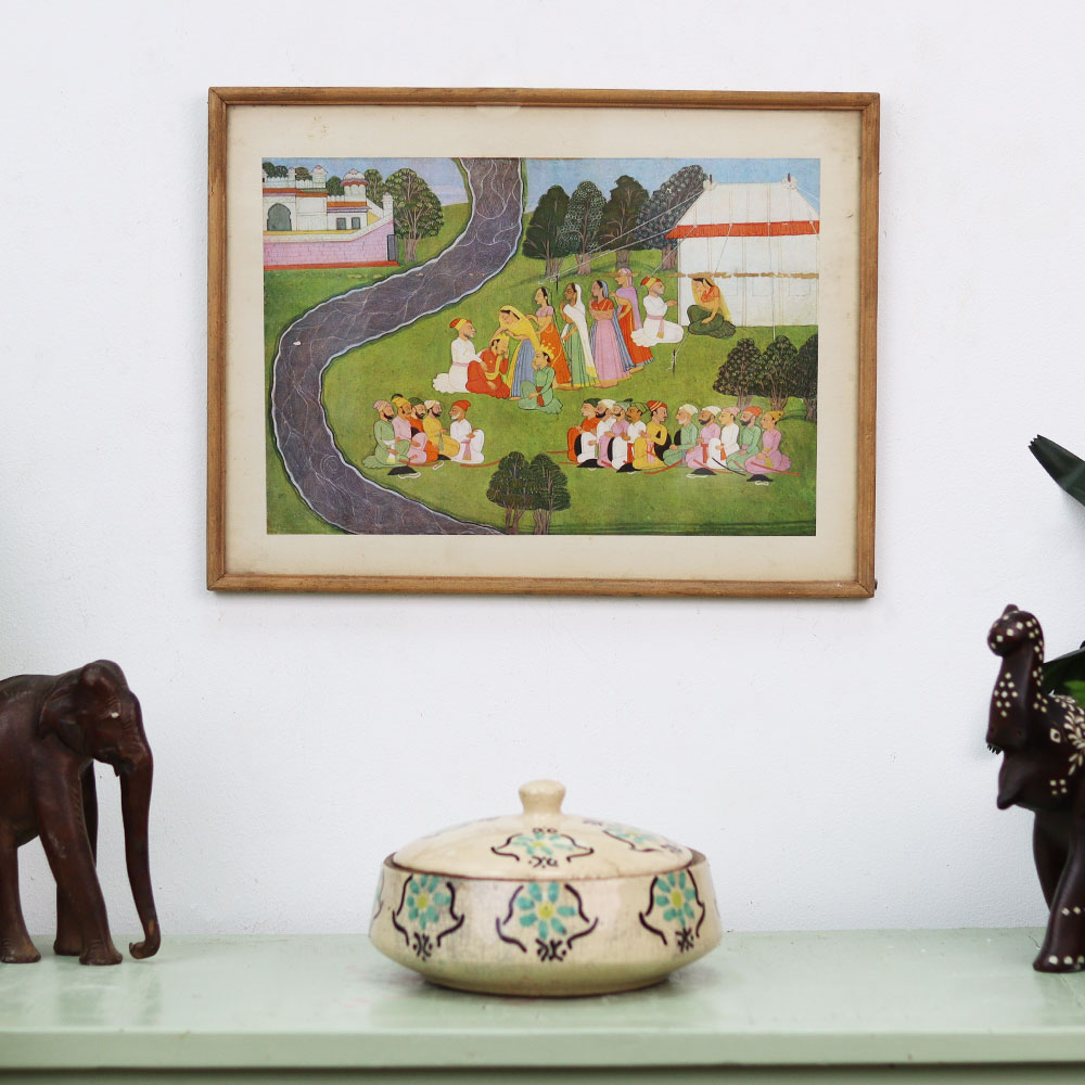 Discover the captivating essence of the Himalayas with this exquisite vintage Kangra art print. Crafted with meticulous attention to detail, this piece celebrates the rich cultural heritage of India's mountain region. Immerse yourself in the timeless allure of the Himalayas with every glance at this stunning Kangra art print. The vibrant colors and delicate brushstrokes transport you to a world of breathtaking natural beauty, where the grandeur of the mountains and the artistry of the Kangra tradition converge. Whether you're an art enthusiast or simply seeking to add a touch of cultural elegance to your home, this vintage print is sure to captivate and inspire. This Kangra art print is the perfect addition for those who appreciate the beauty of traditional Indian art and the majesty of the Himalayas. Display it in your living room, home office, or any space that needs a dose of artistic sophistication. Elevate your décor and immerse yourself in the captivating world of Himalayan Kangra art.