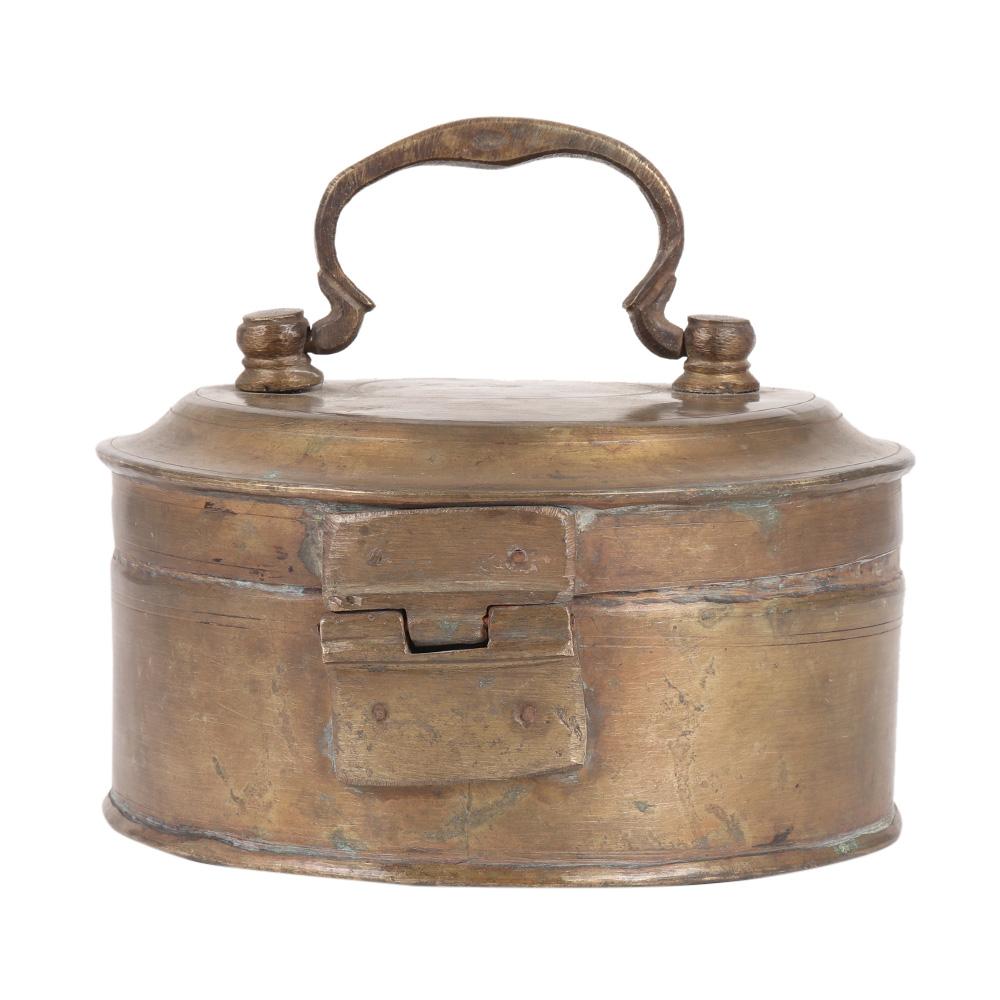 Everything about this incredible Vintage used a plain box with a handle designed to mesmerize and impress. The period product was earlier part of Lucknow elite and used as a paan box. The same has been painfully restored to its original glory and given a touch of original charm. The slight imperfections and heritage marks on the Vintage used a plain box with a handle make it a true investment for antique lovers or restaurants.