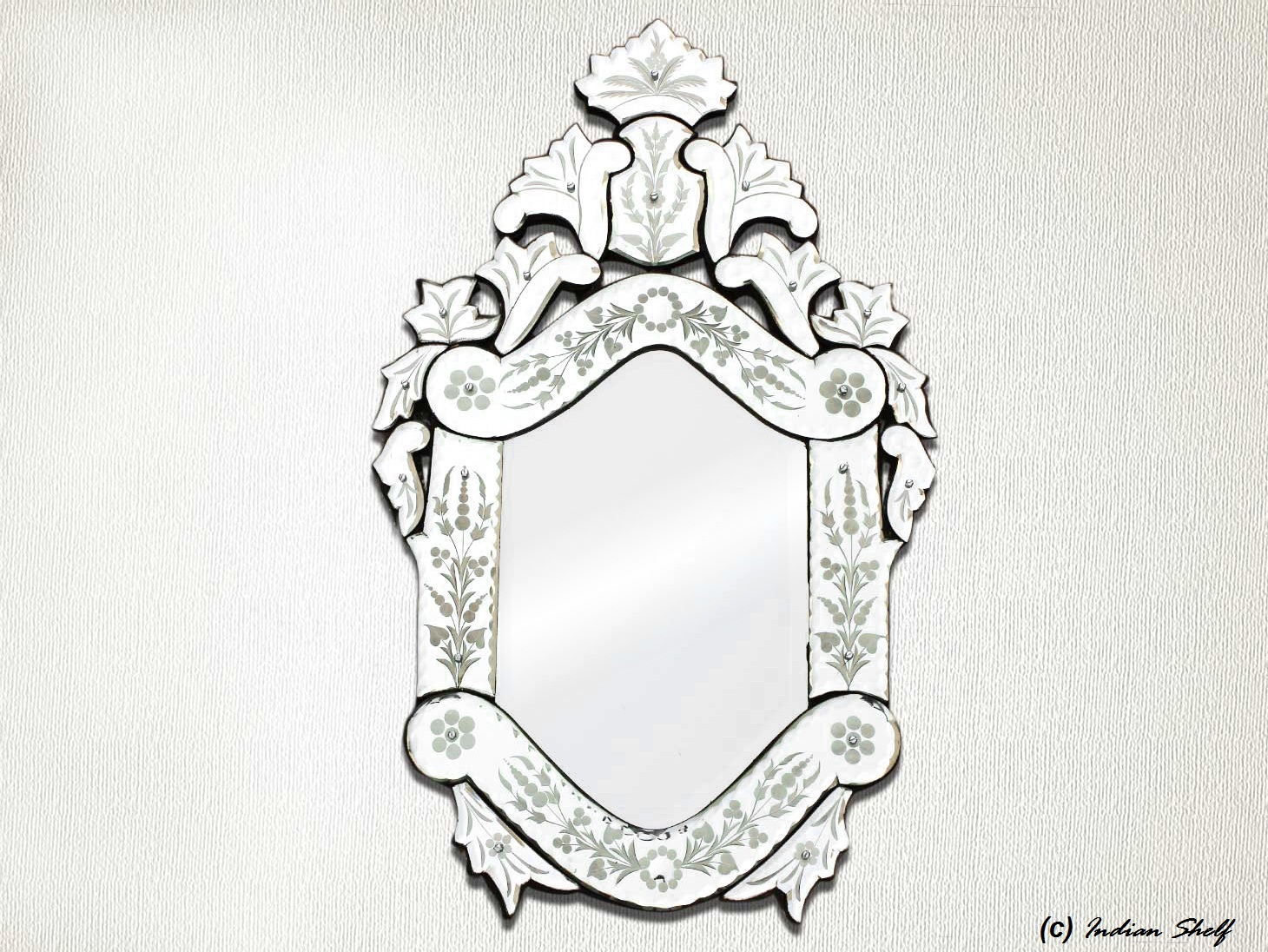 Vintage Venetian Mirror-24.5 inches X 15 inches.A simple way to incorporate an elegant look into any room is the addition of Venetian mirrors these treasured pieces reflect light and serve as an artistic focal point transforming a room into a glamorous environment with a bit of old world elegance.