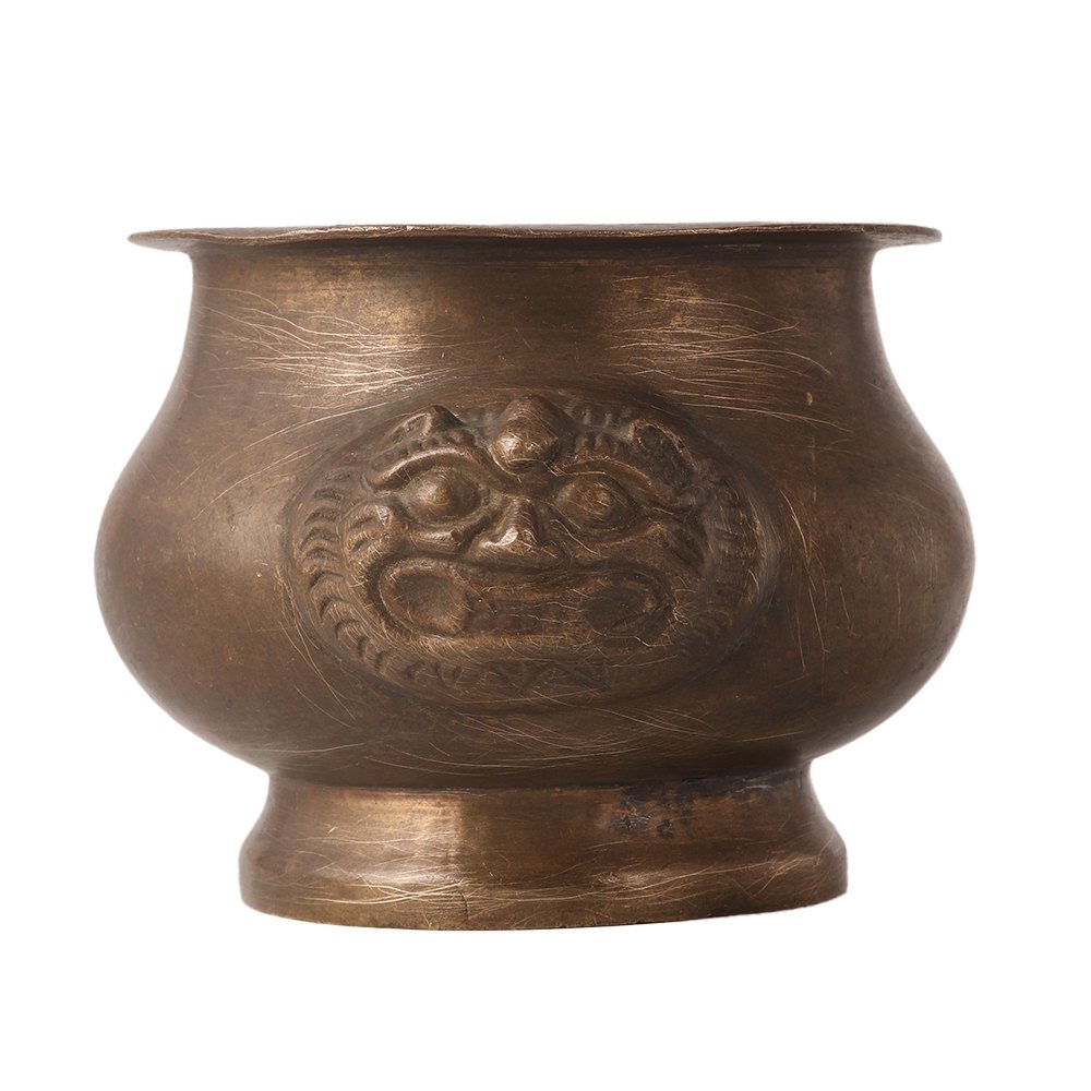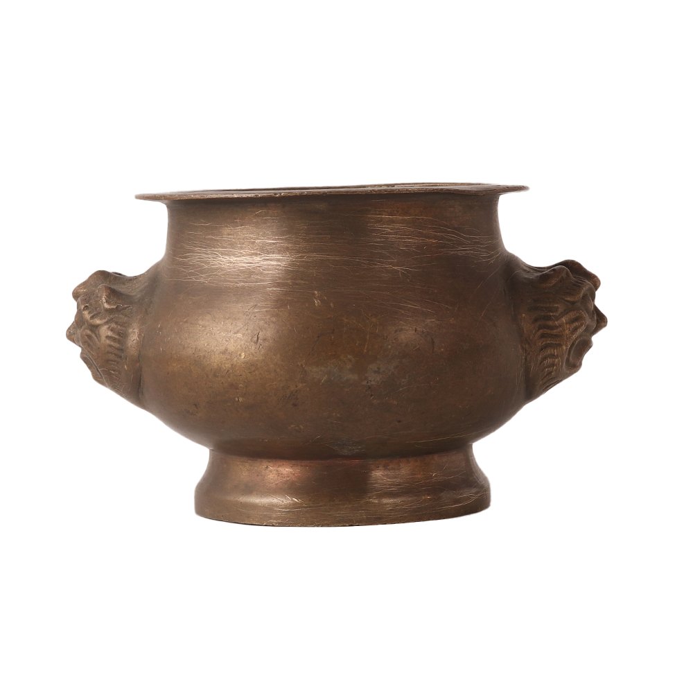 Buy a vintage style water pot online on our website and have it delivered to your home. A vintage style brass holy water pot in antique brown finish that looks amazing when displayed at home, office or restaurant. This water pot is engraved with two embossed lion heads in Chinese art. For centuries, holy water pots have been used in temples to offer water to the gods, at home to store water and for decoration, and in rituals and havans to store holy water. Use this water pot as an indoor flower pot and decorate your living room, hallway, entryway or patio garden. An auspicious pot for vintage collection and gift for friends, family and relatives for auspicious, festive and special occasion.