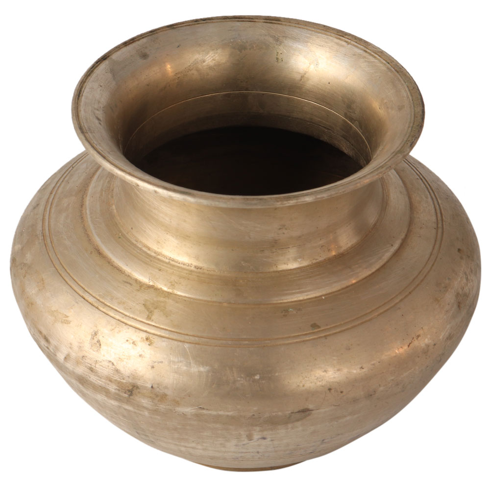 The vintage Kalash or water pot is carved from a white metal alloy. It is used in Hindu temples and at home. It should be placed in the north or east direction in the room. You can use it in rituals, weddings or other occasions.
