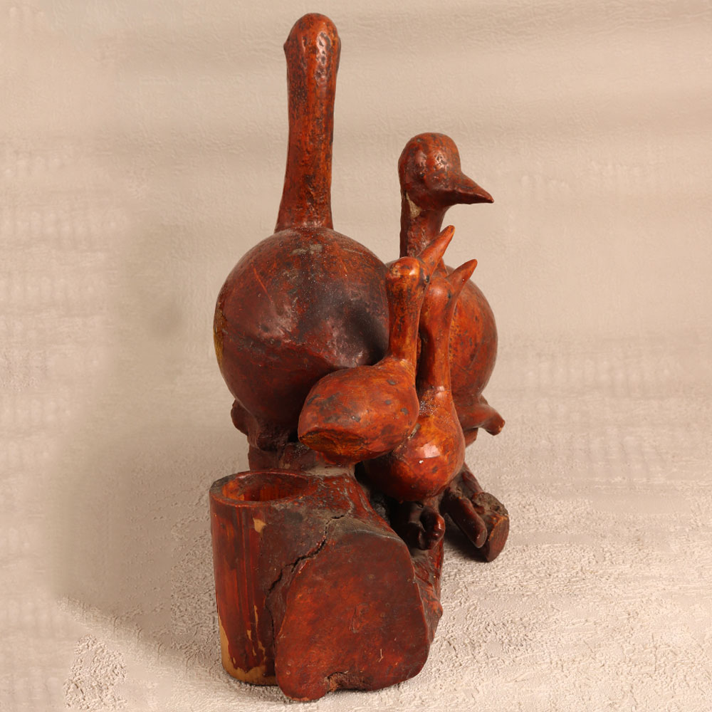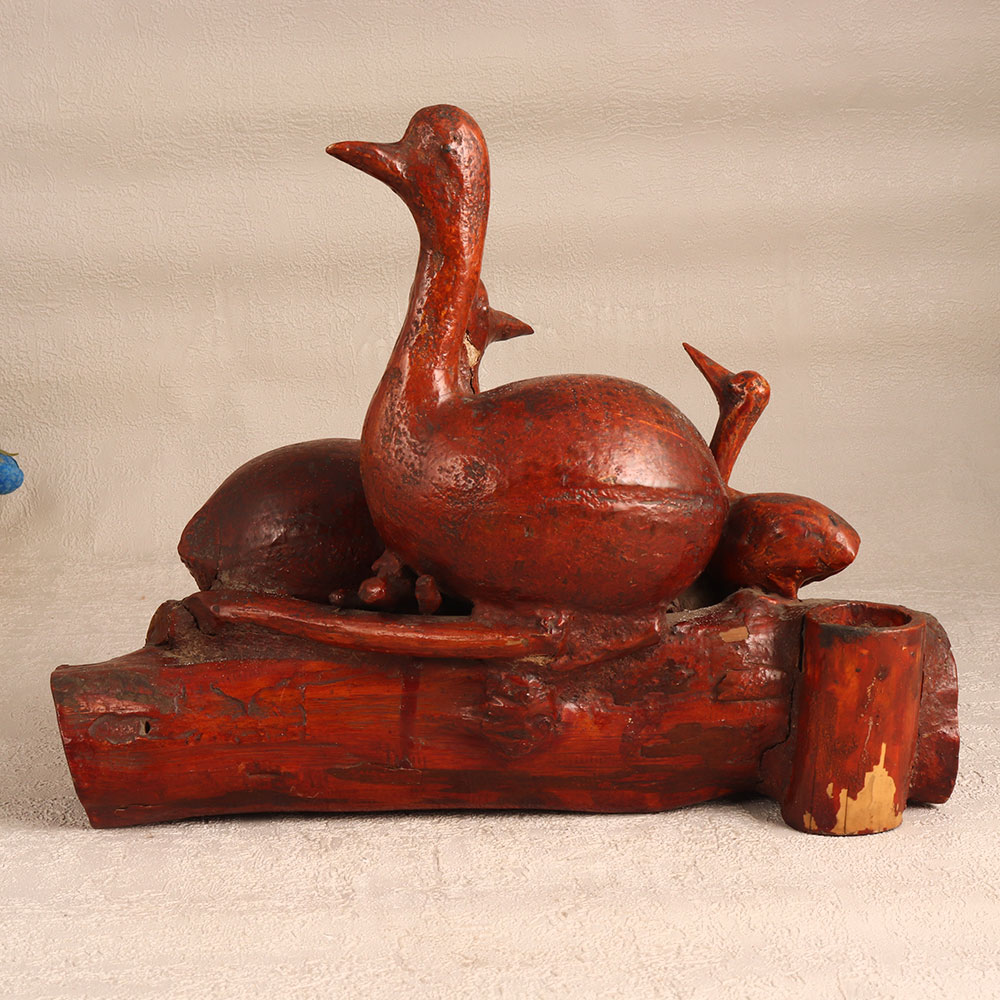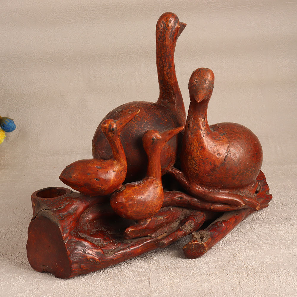 Buy a vintage wooden duck statue online and get a hassle free delivery right at your doorstep. Crafted by highly skilled artisans in the European Art tradition, this masterpiece showcases a family of ducks, comprising two proud parents and two adorable baby ducks, all sitting together in perfect harmony. The statue's remarkable antique golden finish adds a touch of opulence, enhancing its aesthetic appeal. Handcrafted from high-quality mango wood, this statue reflects the artisan's dedication to detail and quality. Its versatile design allows it to grace any space, from homes to offices, hotels to cafes, shops, and even restaurants, effortlessly adding a touch of sophistication and nostalgia to your surroundings. This splendid creation isn't just a decorative piece, it's also a collector's dream. With its vintage allure, it's an ideal addition to your vintage collection, making it a unique conversation starter and a remarkable exhibit at vintage-themed exhibitions. Moreover, this wooden duck statue makes for an exceptional gift for your family, friends or relatives on special, festive, or auspicious occasions. It's a symbol of family unity, timelessness, and craftsmanship – a present that will be cherished for generations to come.