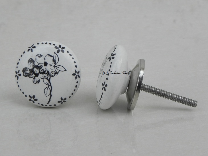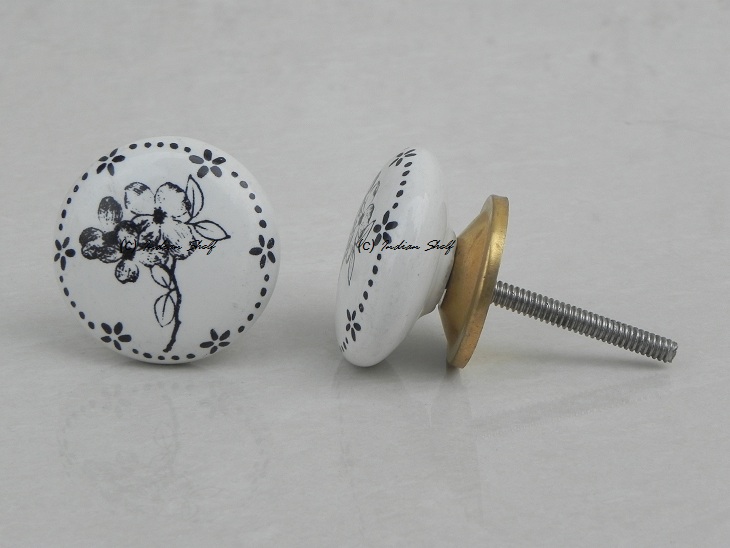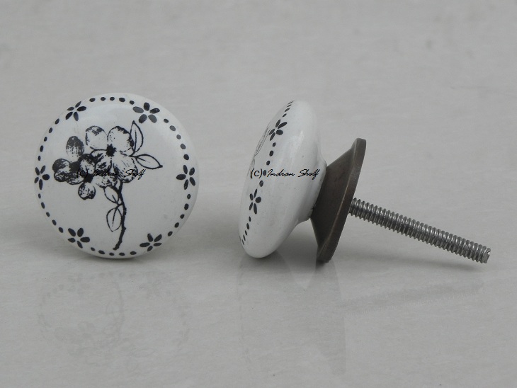 Violets Flower Flat Ceramic Knob. Ideal for kitchen cabinets, kitchen drawers, dining room, bed room, chest drawers, dressing tables, almirah