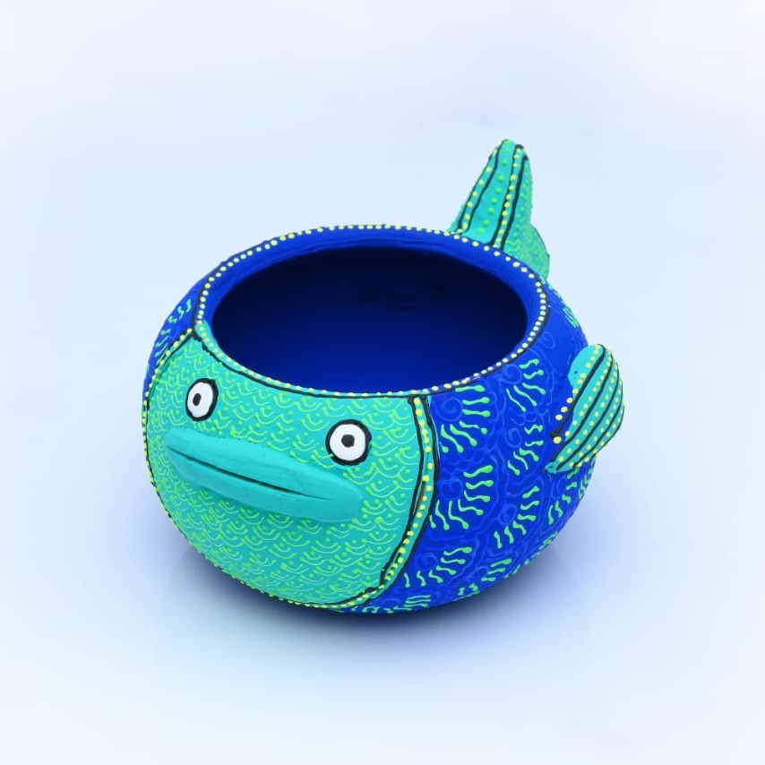 Celebrate tradition with a modern twist through this Handcrafted Terracotta Fish Diya in Blue. Its vibrant fish shape symbolizes good fortune and positivity, while the natural clay body connects you to the purity of earth. Compact yet artistic, it serves as both a tealight holder and a statement décor accent for Diwali, puja rooms, or unique gifting.