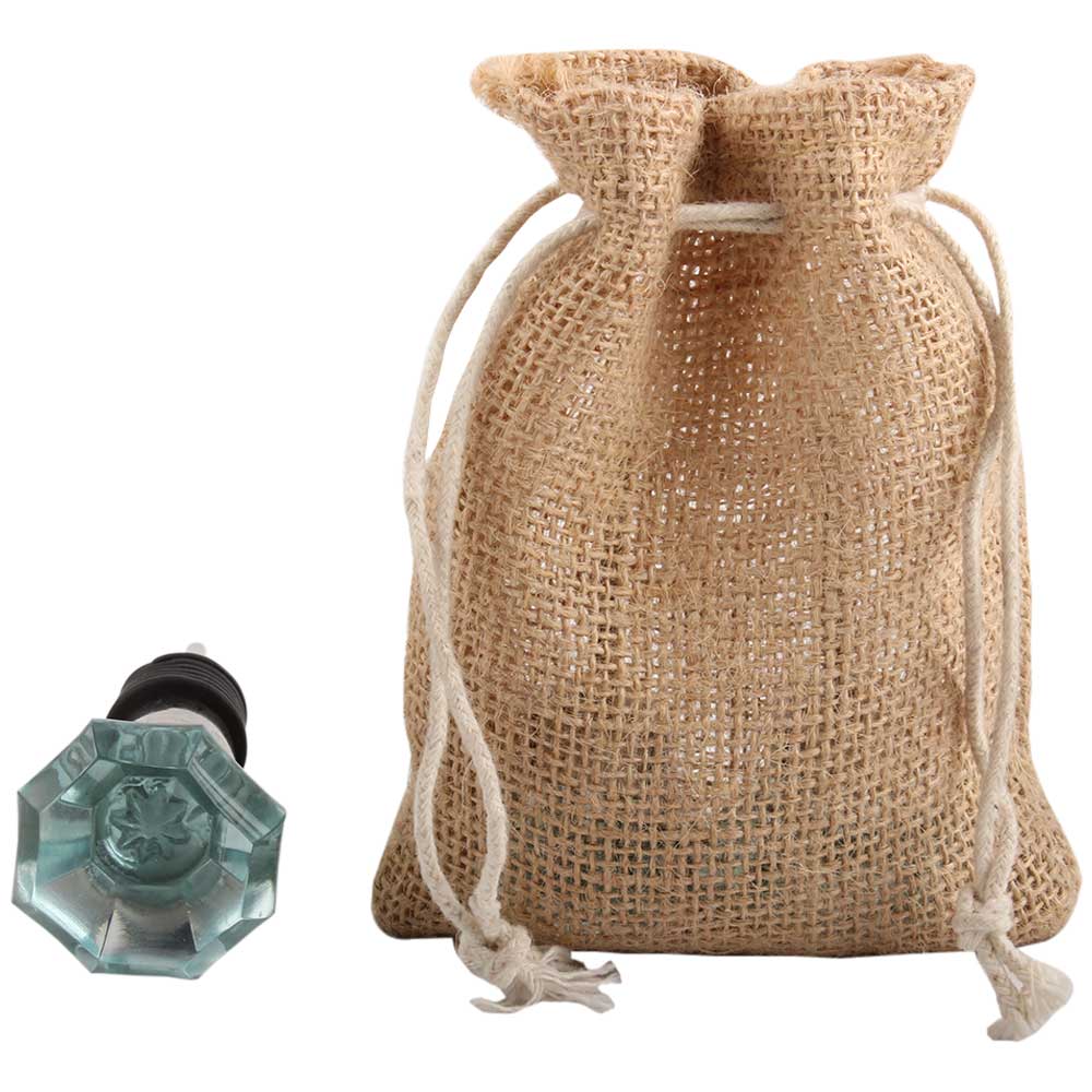 Water Octagon Shape Glass Wine Stopper.zinc alloy wine bottle stopper with attractive Jute Bag Packaging.