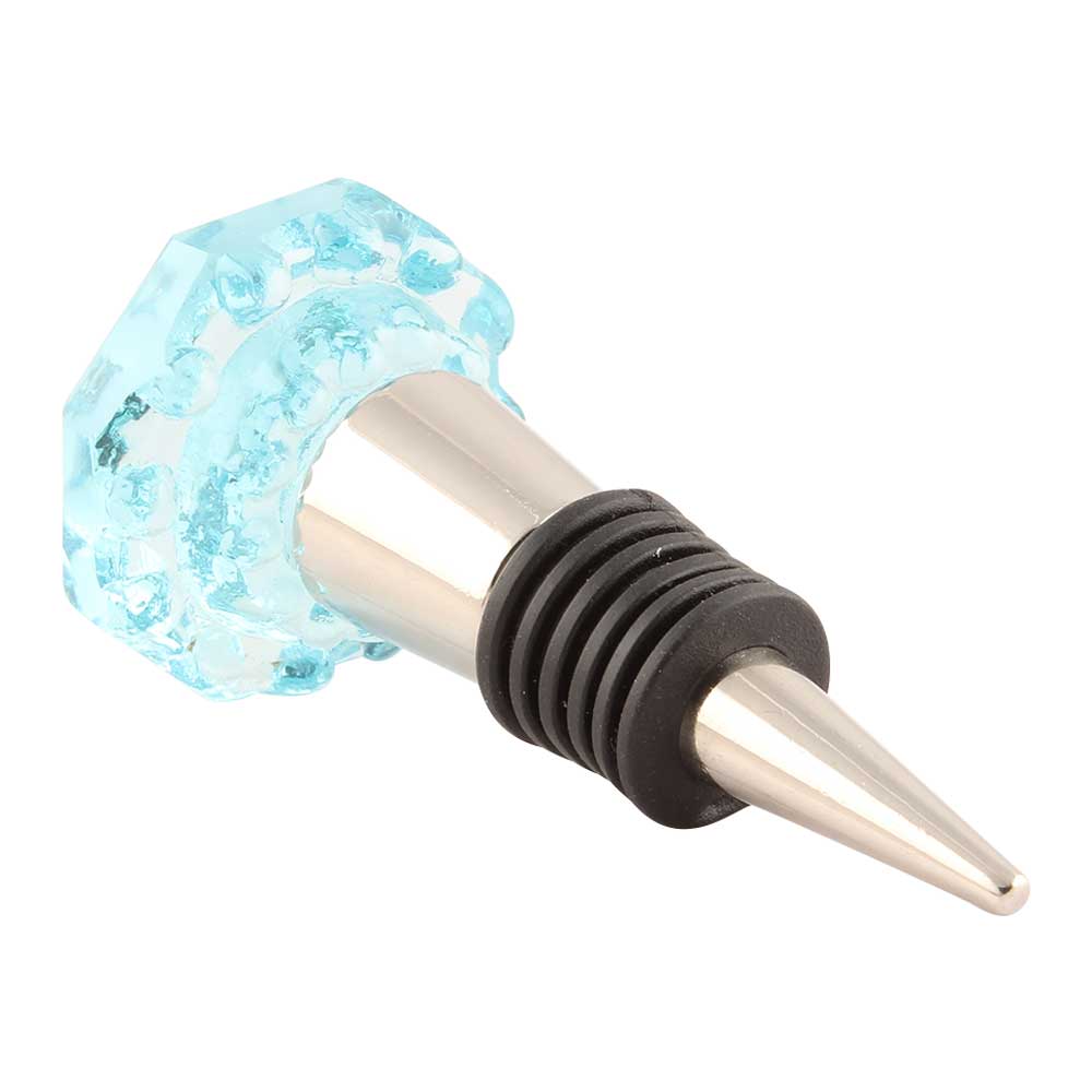 Water Octagon Shape Glass Wine Stopper. Zinc Alloy Wine Bottle Stopper with Attractive Jute Bag Packaging.