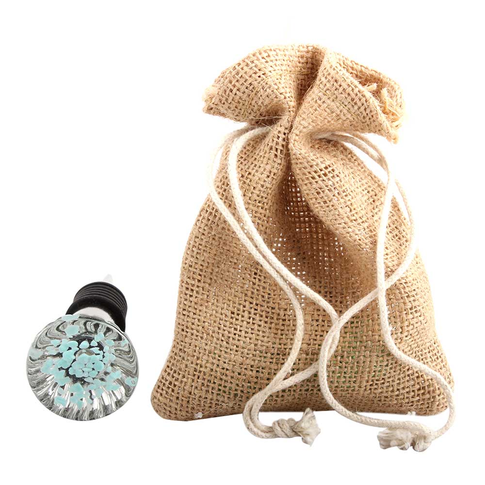 Water Paneled Sides Glass Wine Stopper.zinc alloy wine bottle stopper with attractive Jute Bag Packaging.