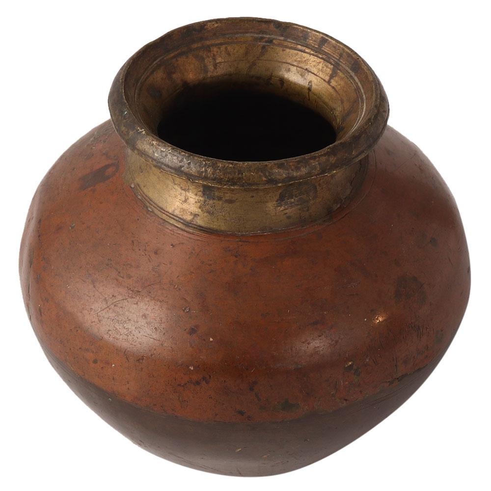 Holy Water Pot made of Brass and Copper. This Pot was made in Northern India. Brass and Copper were used for a perfect finish. This water pot is suitable for Hindu Worship.