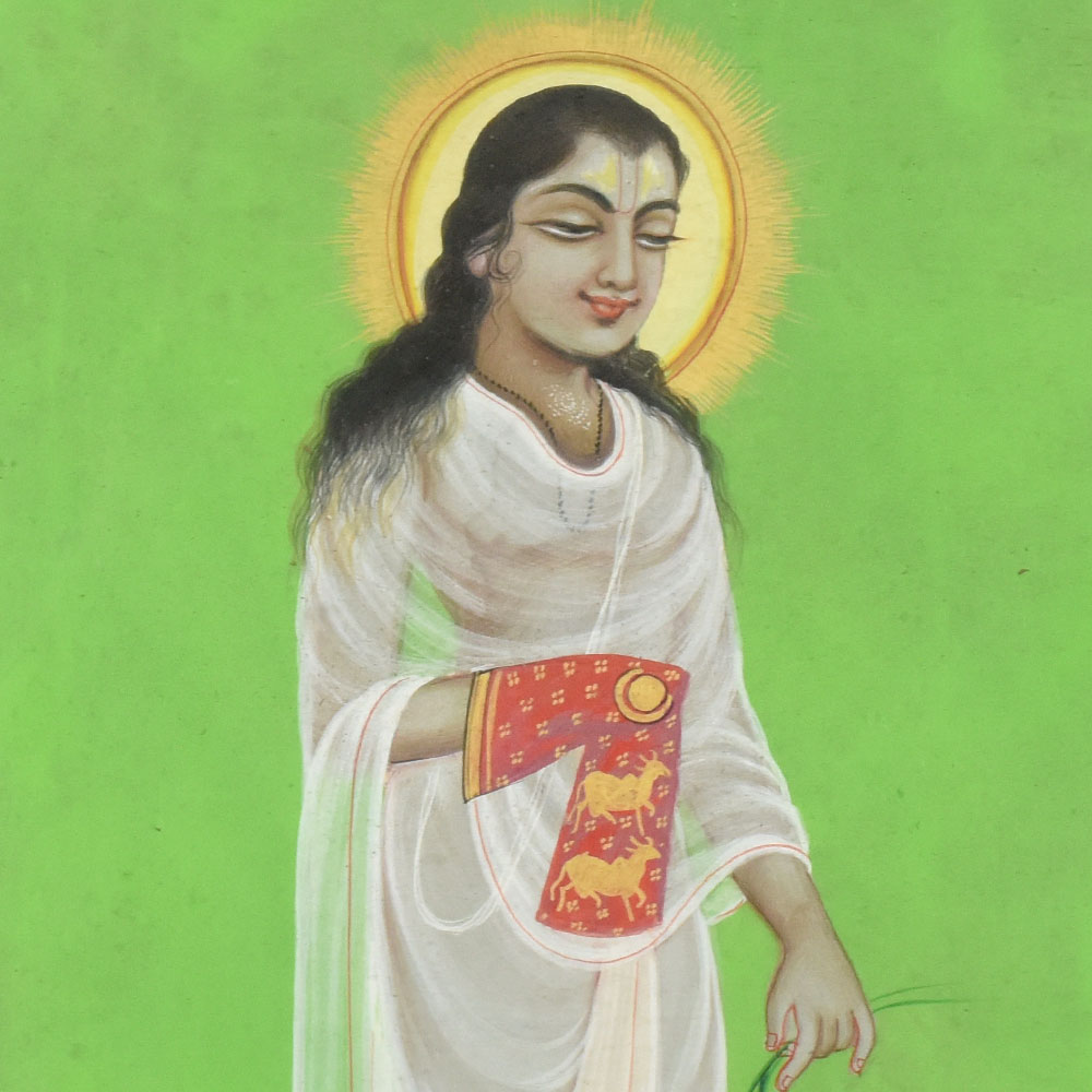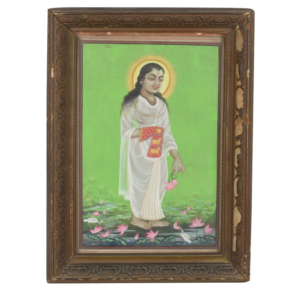 Celebrate devotion and heritage with this beautiful watercolor paper painting of Shrinath Ji, gracefully framed in an ornate wooden border. The painting captures Shrinath Ji in a divine standing posture, draped in white attire with a radiant golden halo, holding a lotus flower while surrounded by blooming lotuses. The vibrant green background and delicate brushwork highlight the traditional Nathdwara style, bringing out both elegance and spiritual depth. Every detail in the attire, ornaments, and serene expression reflects the devotion of the artisan and the sacred aura of the deity. Ideal for pooja rooms, meditation spaces, or as a centerpiece in cultural decor, this artwork radiates blessings, peace, and prosperity. A timeless collectible for devotees and art lovers, it also makes a thoughtful gift for festivals, weddings, and spiritual occasions.