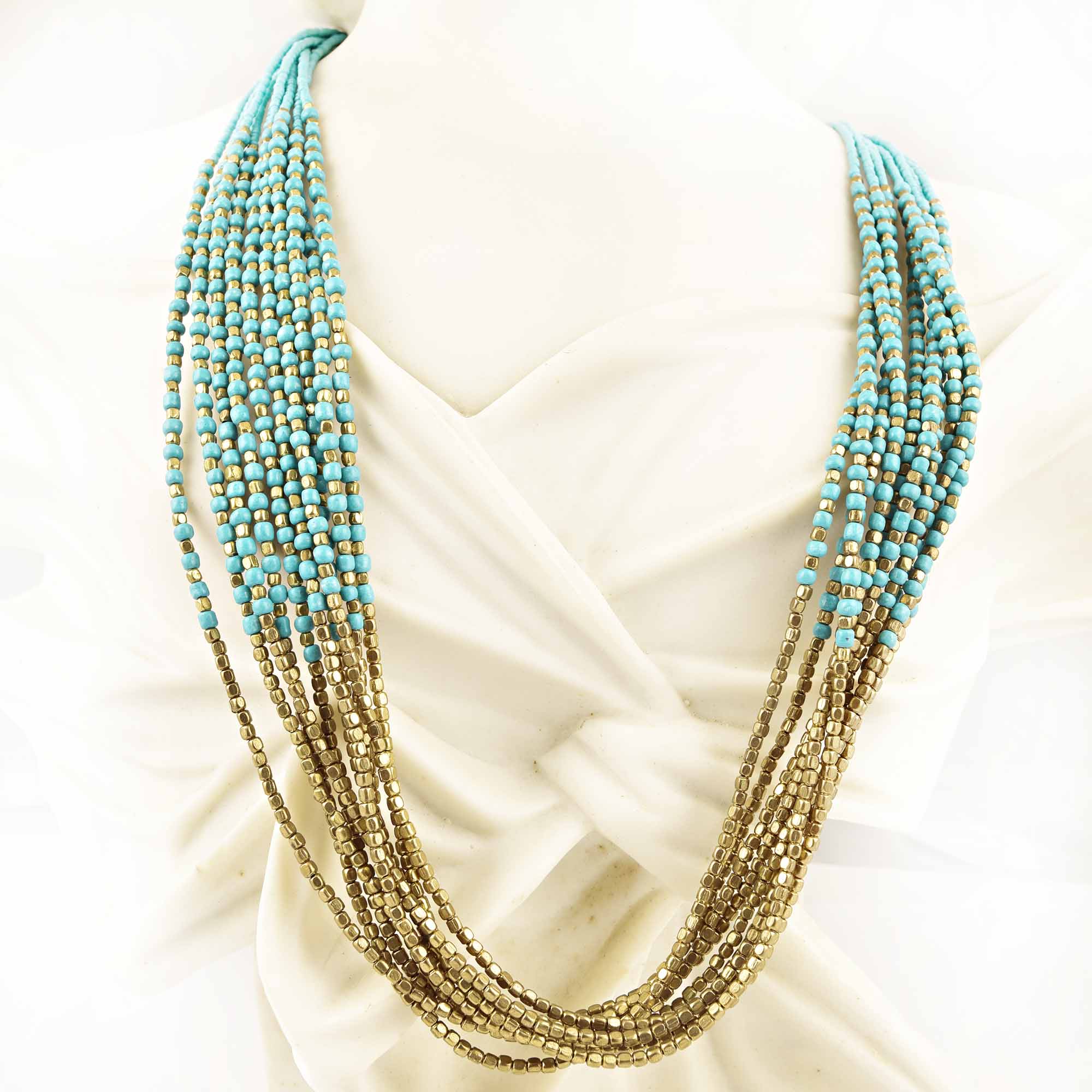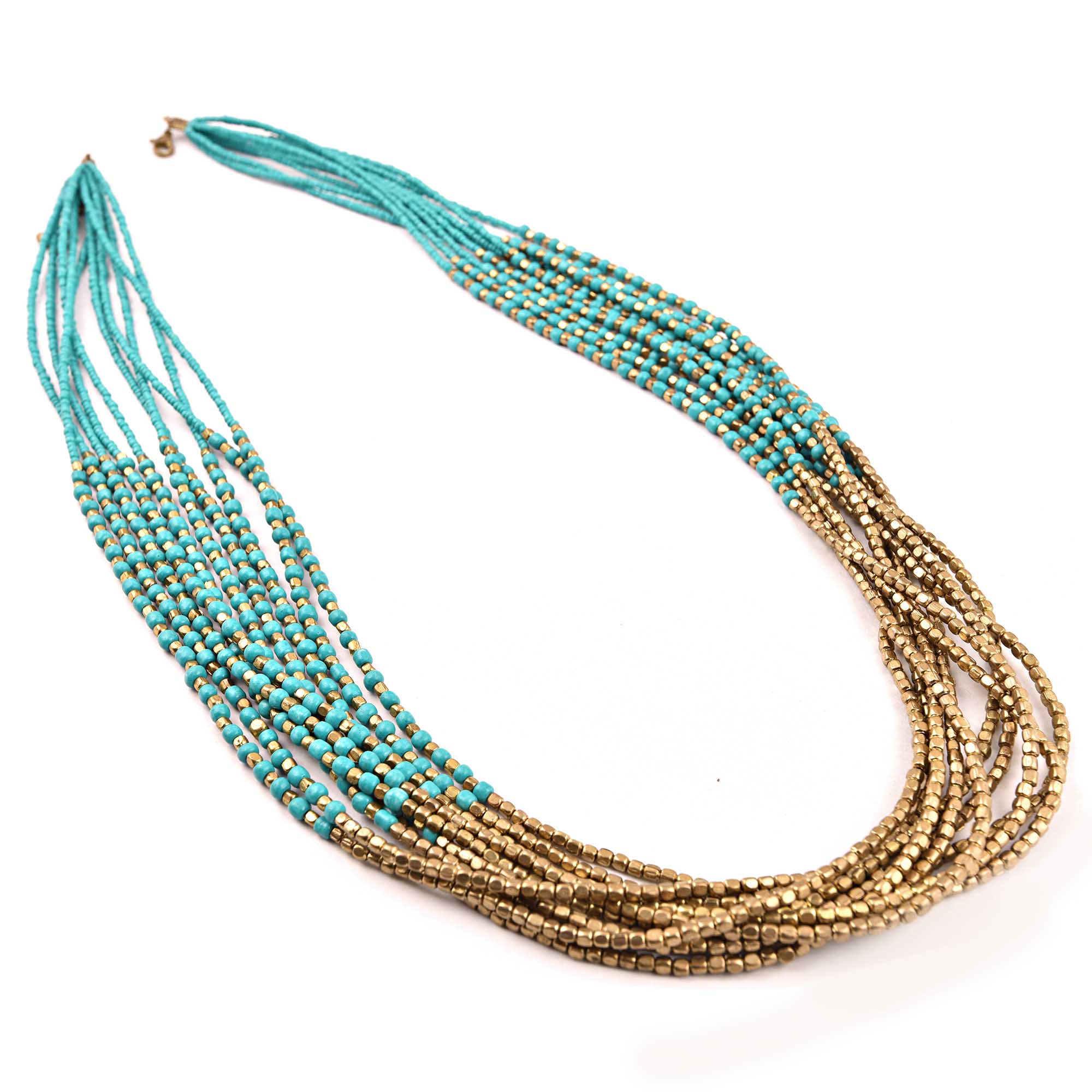 Waterfall Stringed Necklace New Beautiful Jewellery. Seed Beads With Coiled Wires and Brass Scalp.