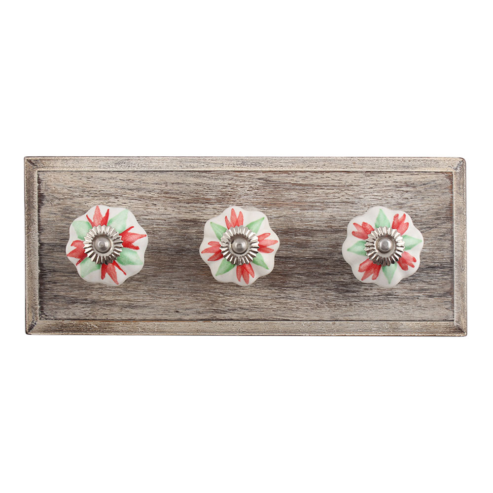 Watsonia Ceramic Wooden Hook. A Perfect Complement to the Soft Tone of the Wood are these White Traditional Hat & Coat Hook Made of Genuine Porcelain and Brass. It can be use to Hang Jewellery, Leashes, Towels, Scarves, Light Weight Sweaters, Caps Etc.