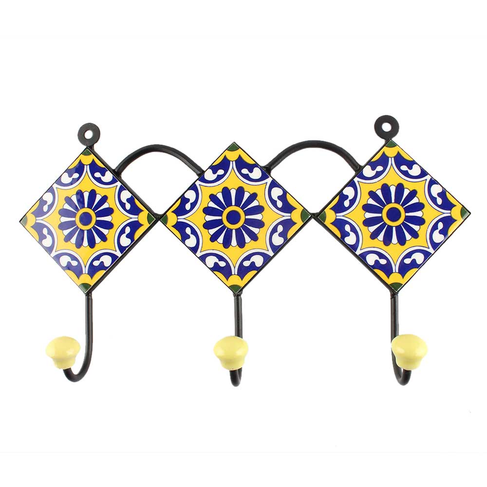 Wheel Flower Ceramic Tile Hook in Navy Blue. When Put on Wall or Cabinet It is An Art in Itself. The Metal Part of this Hook is Black Powder Coated.