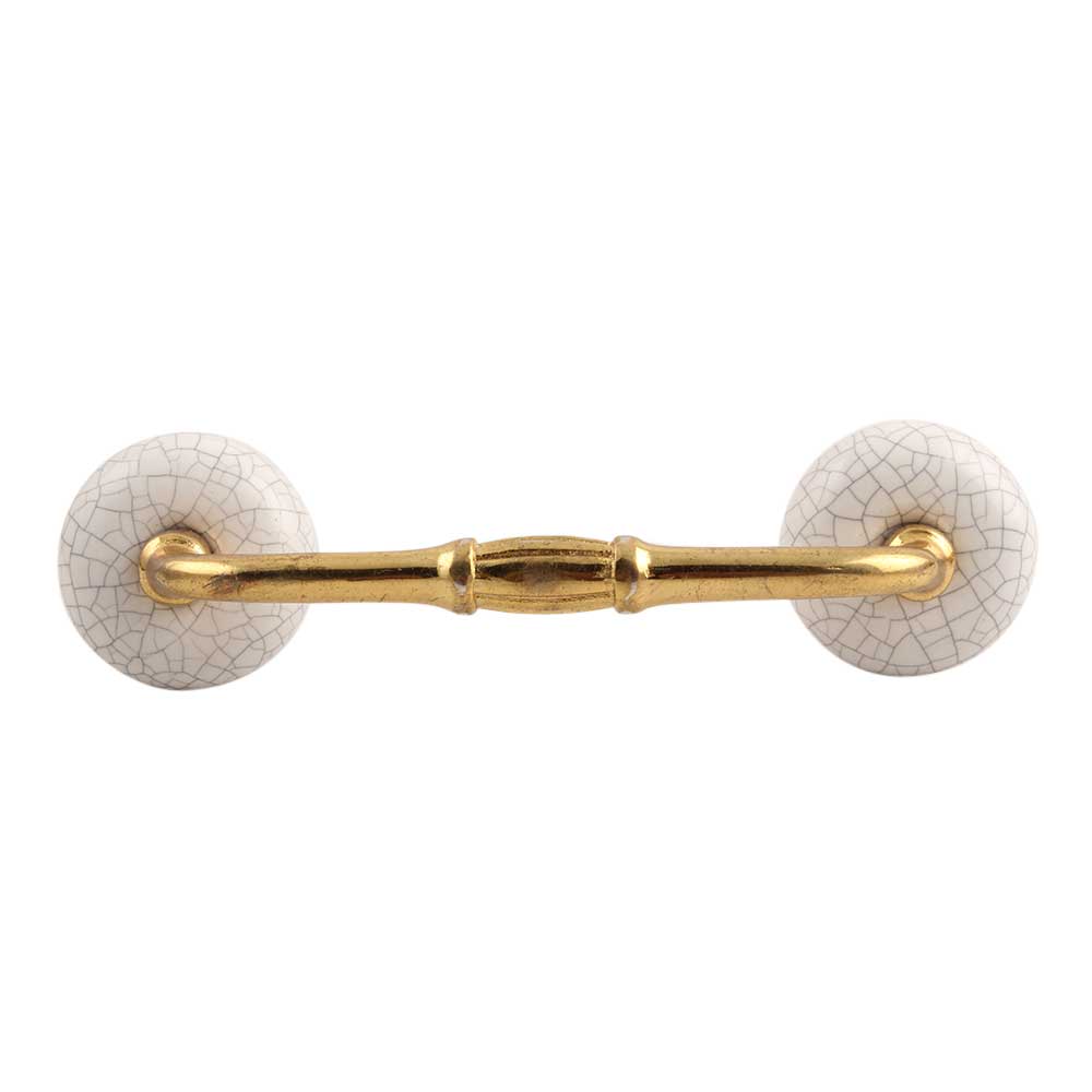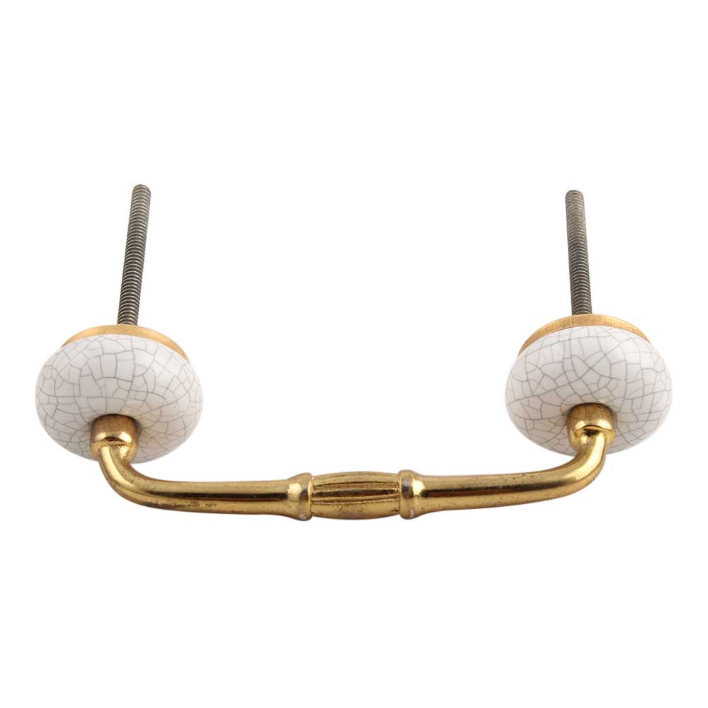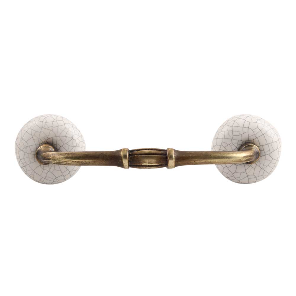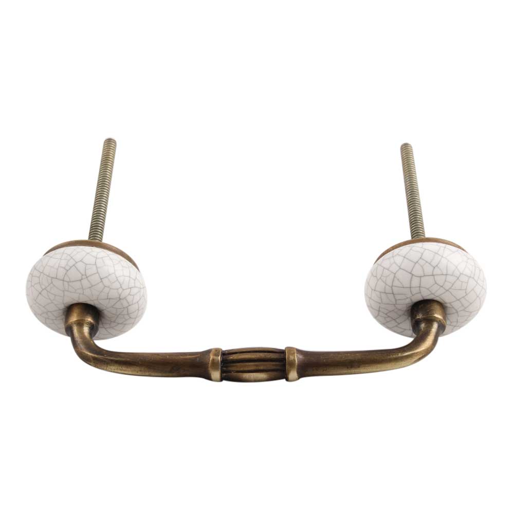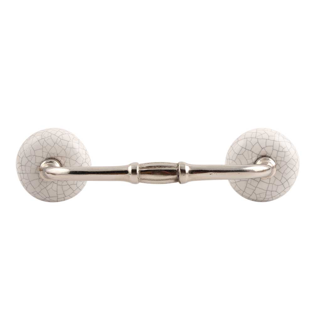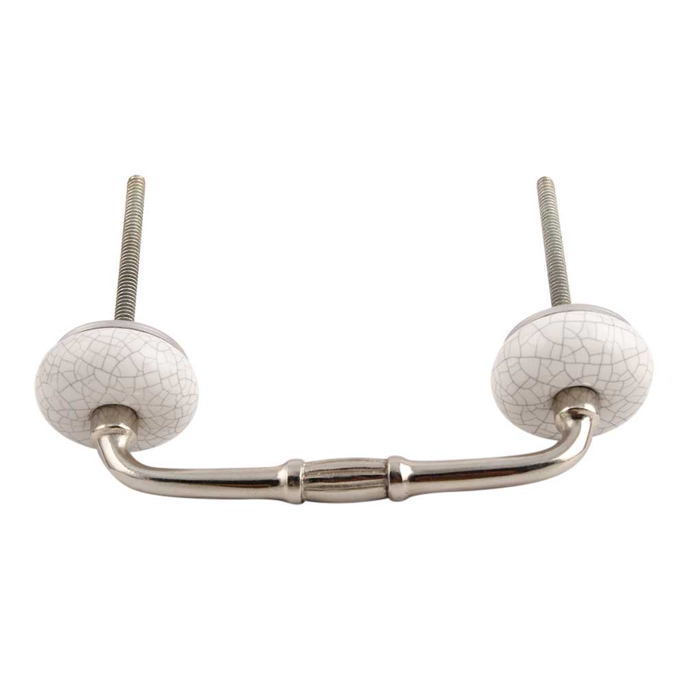 White and Black Crackle Ceramic Bridge Handle. Ideal for Drawer, Dresser, Cabinet, Wardrobe, Cupboard and Almirah.