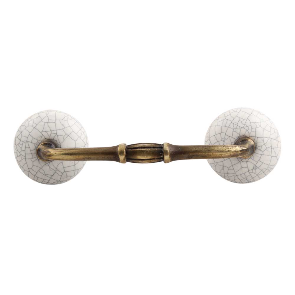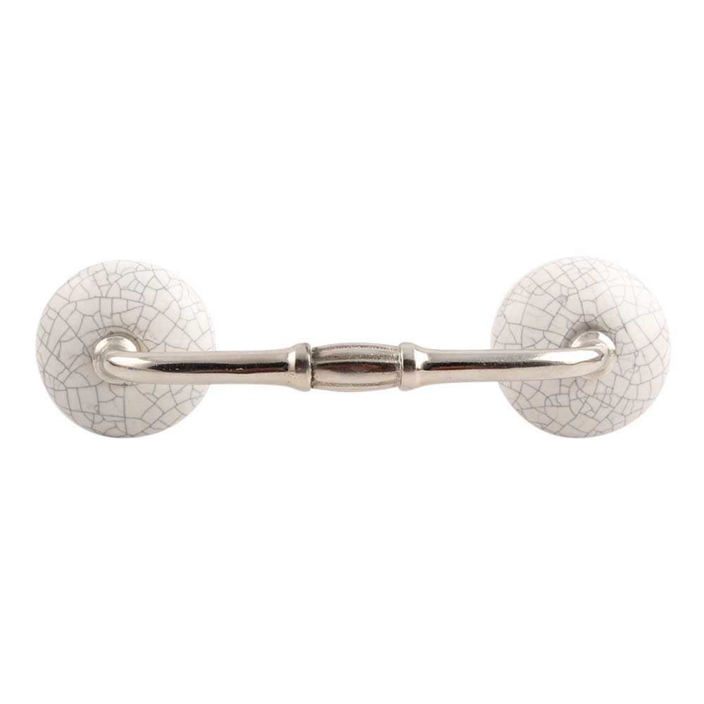 White and Black Crackle Ceramic Bridge Handle. Ideal for Drawer, Dresser, Cabinet, Wardrobe, Cupboard and Almirah.