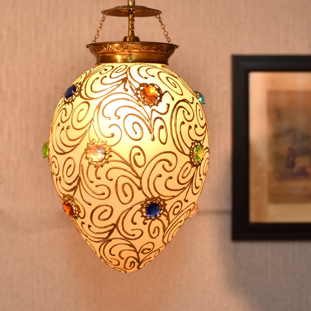 White and Gold Regency style hanging glass light fixture