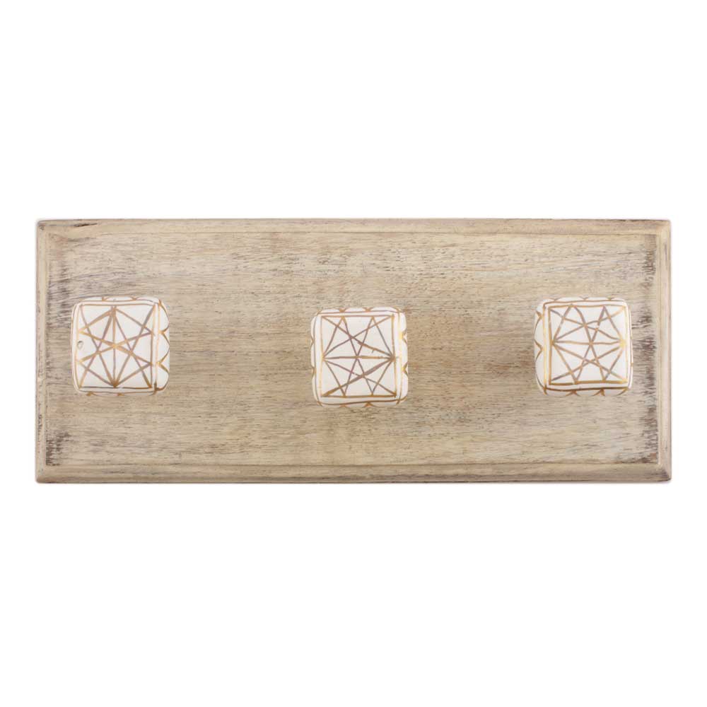 White And Golden Square Ceramic Wooden Hooks. A Perfect Complement to the Soft Tone of the Wood are these White Traditional Hat and Coat Hook Made of Genuine Porcelain and Brass. It can be used to Hang Jewelry, Leashes, Towels, Scarves, Light Weight Sweaters, Caps etc.