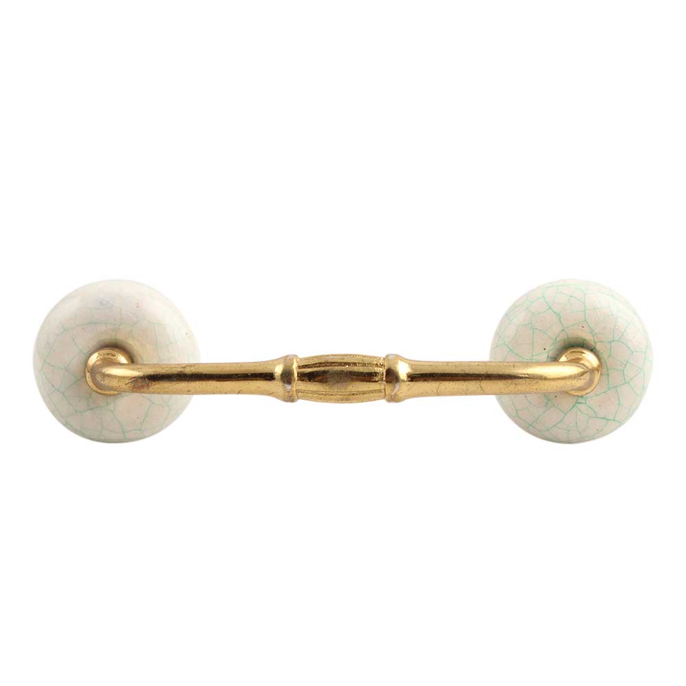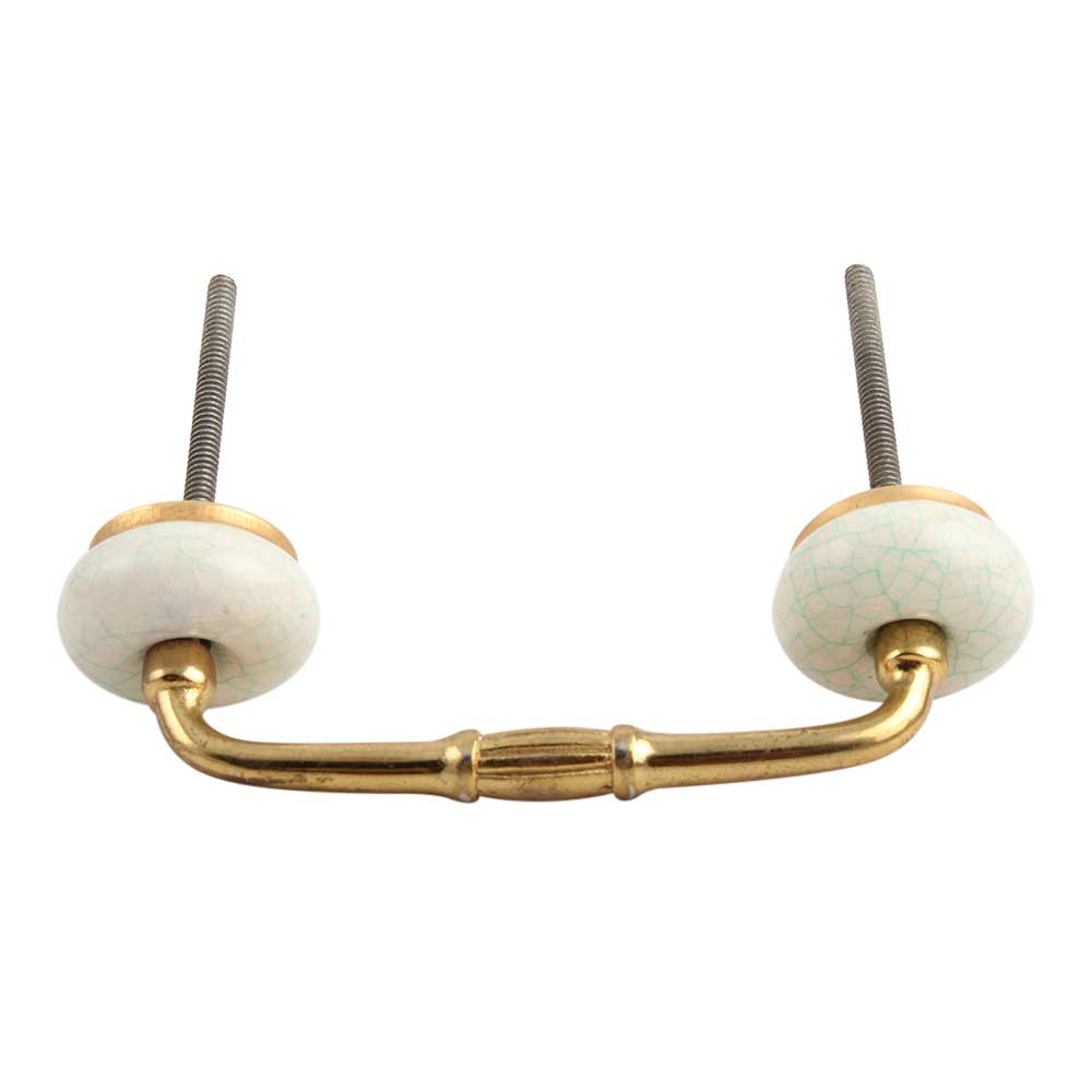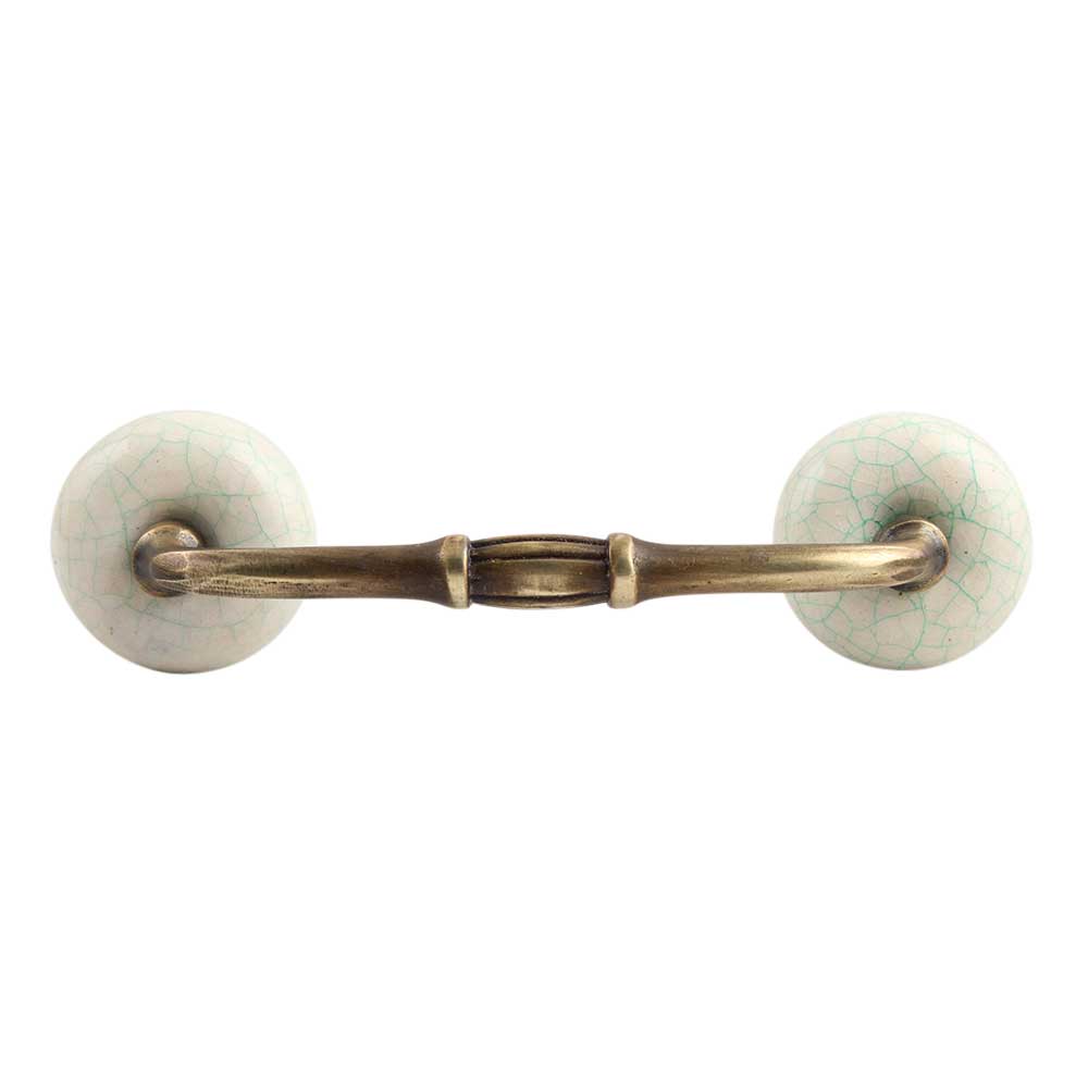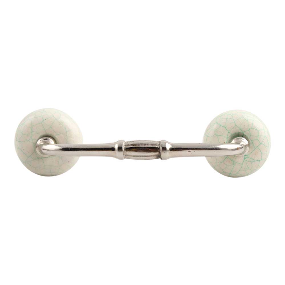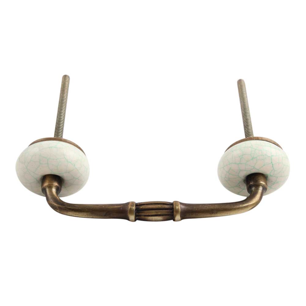 White and Green Crackle Ceramic Bridge Handle. Ideal for Drawer, Dresser, Cabinet, Wardrobe, Cupboard and Almirah.