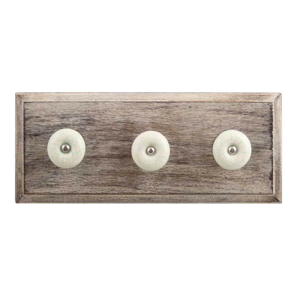 White and Green Crackle Ceramic Wooden Hook. A Perfect Complement to the Soft Tone of the Wood are these White Traditional Hat & Coat Hook Made of Genuine Porcelain and Brass. It can be use to Hang Jewellery, Leashes, Towels, Scarves, Light Weight Sweaters, Caps Etc.