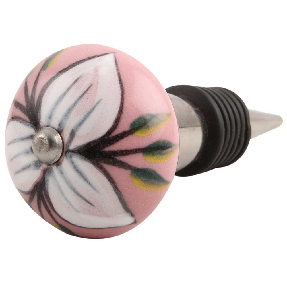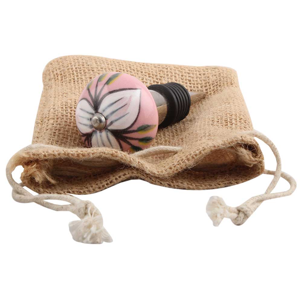 White And Green Flower Leaf Ceramic Wine Stopper.zinc alloy wine bottle stopper with attractive Jute Bag Packaging.