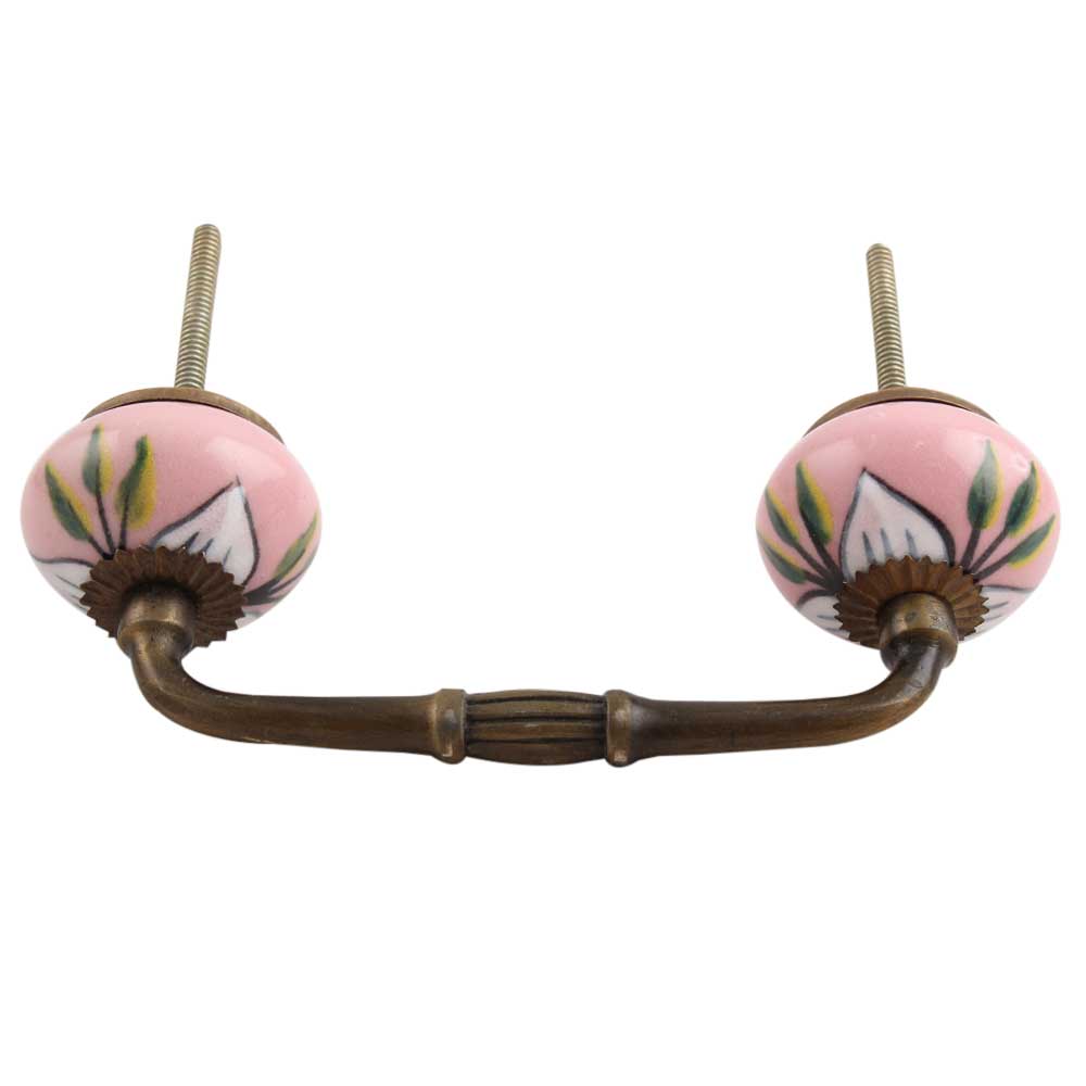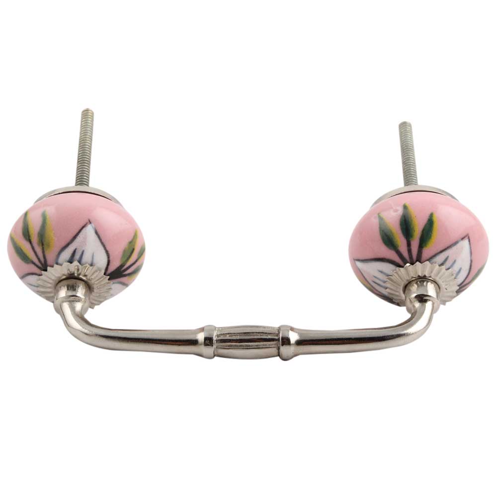 White and Green Leaf Ceramic Bridge Handle. Ideal for Drawer, Dresser, Cabinet, Wardrobe, Cupboard and Almirah.