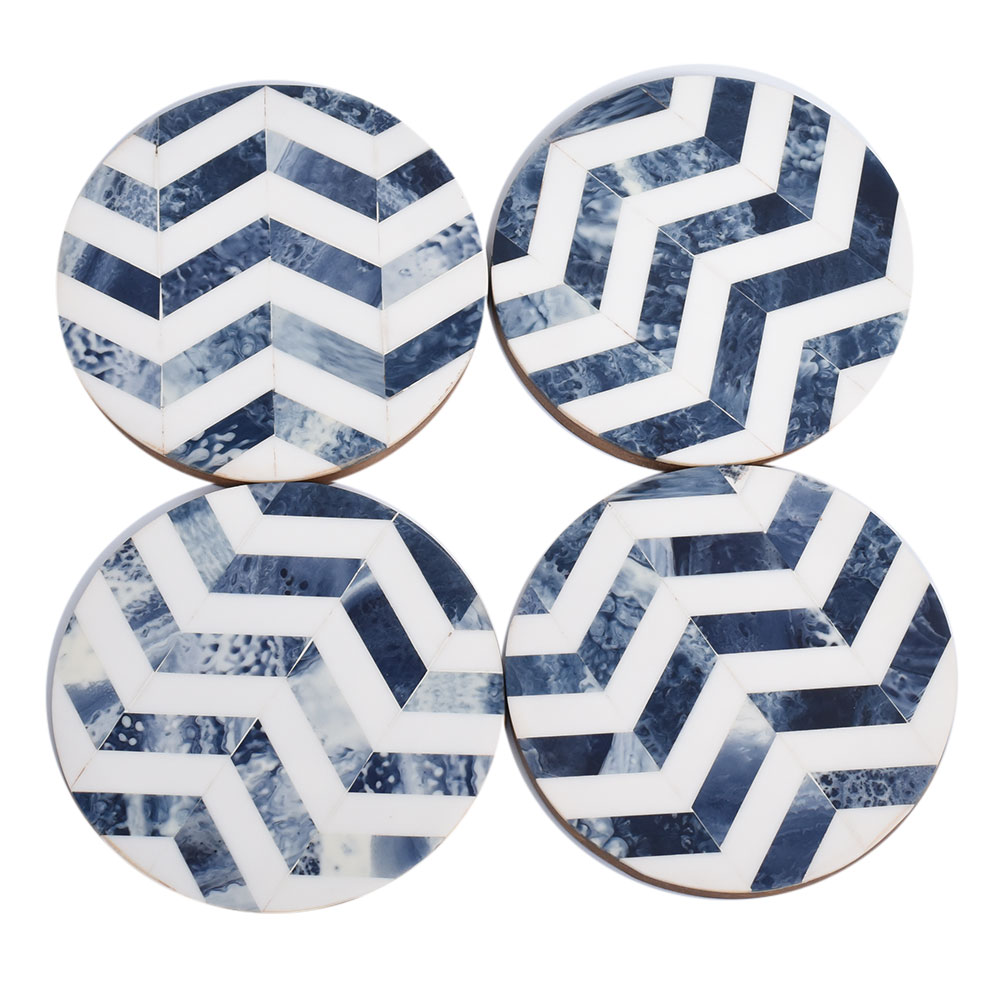 Place your drinks and snacks on these handcrafted coasters to make an everlasting impression. The premium quality of these coasters' craftsmanship makes them suitable for any decor or occasion, while the wood and geometric resin inlay add to their appeal. The Round Wooden Coasters with Resin Inlay are an excellent gifting option for special occasions and more, serving as a contemporary addition to the kitchen. These coasters are handcrafted by skilled artisans to have a beautiful intricate geometric design that will enhance your table decor and beverage experience.
