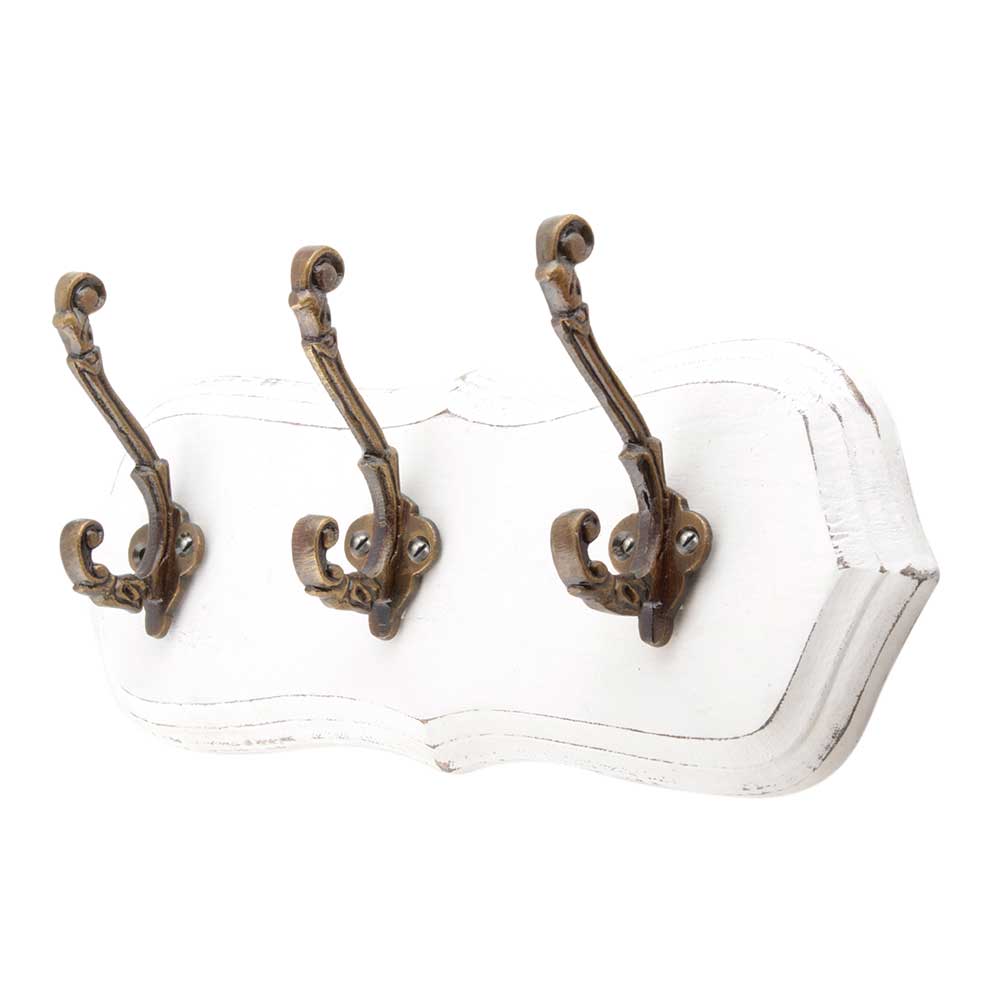 The White Antique Small Wall Wooden Iron Hooks feature an old-world charm, showcasing intricate details and a weathered white finish that suits both traditional and modern home decor. These hooks are perfect for introducing a rustic, farmhouse-inspired element to any wall.