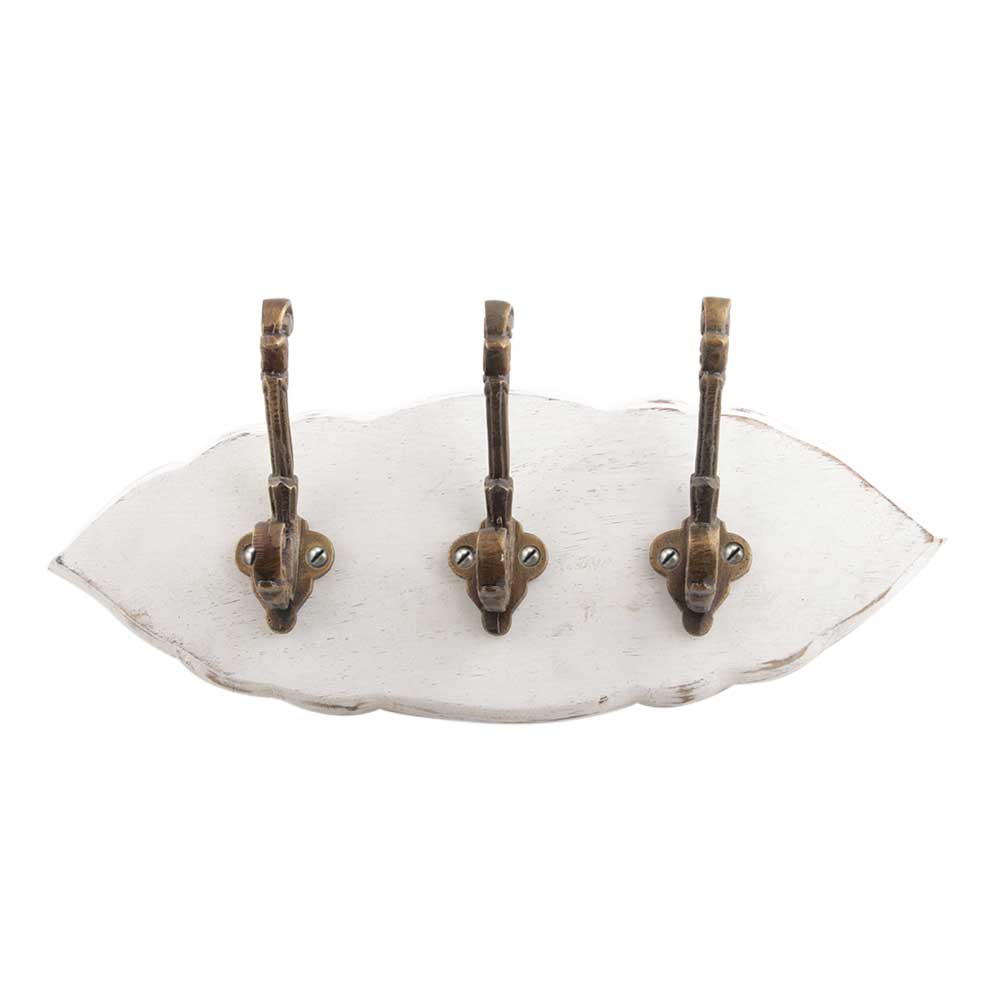 White Antique Small Wall Wooden Iron Hooks. A Perfect Complement to the Soft Tone of the Wood are these White Traditional Hat & Coat Hook Made of Genuine Porcelain and Brass. It can be use to Hang Jewellery, Leashes, Towels, Scarves, Light Weight Sweaters, Caps Etc.