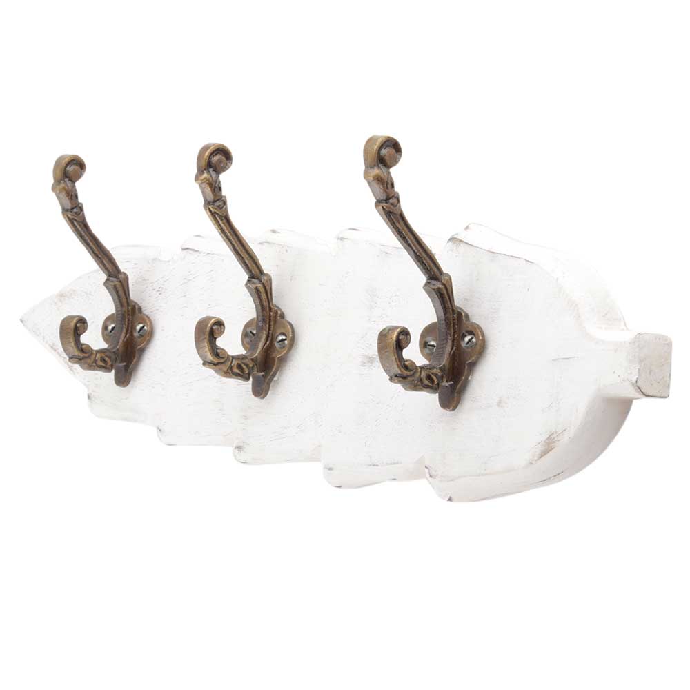 White Antique Small Wall Wooden Iron Hooks. A Perfect Complement to the Soft Tone of the Wood are these White Traditional Hat & Coat Hook Made of Genuine Porcelain and Brass. It can be use to Hang Jewellery, Leashes, Towels, Scarves, Light Weight Sweaters, Caps Etc.