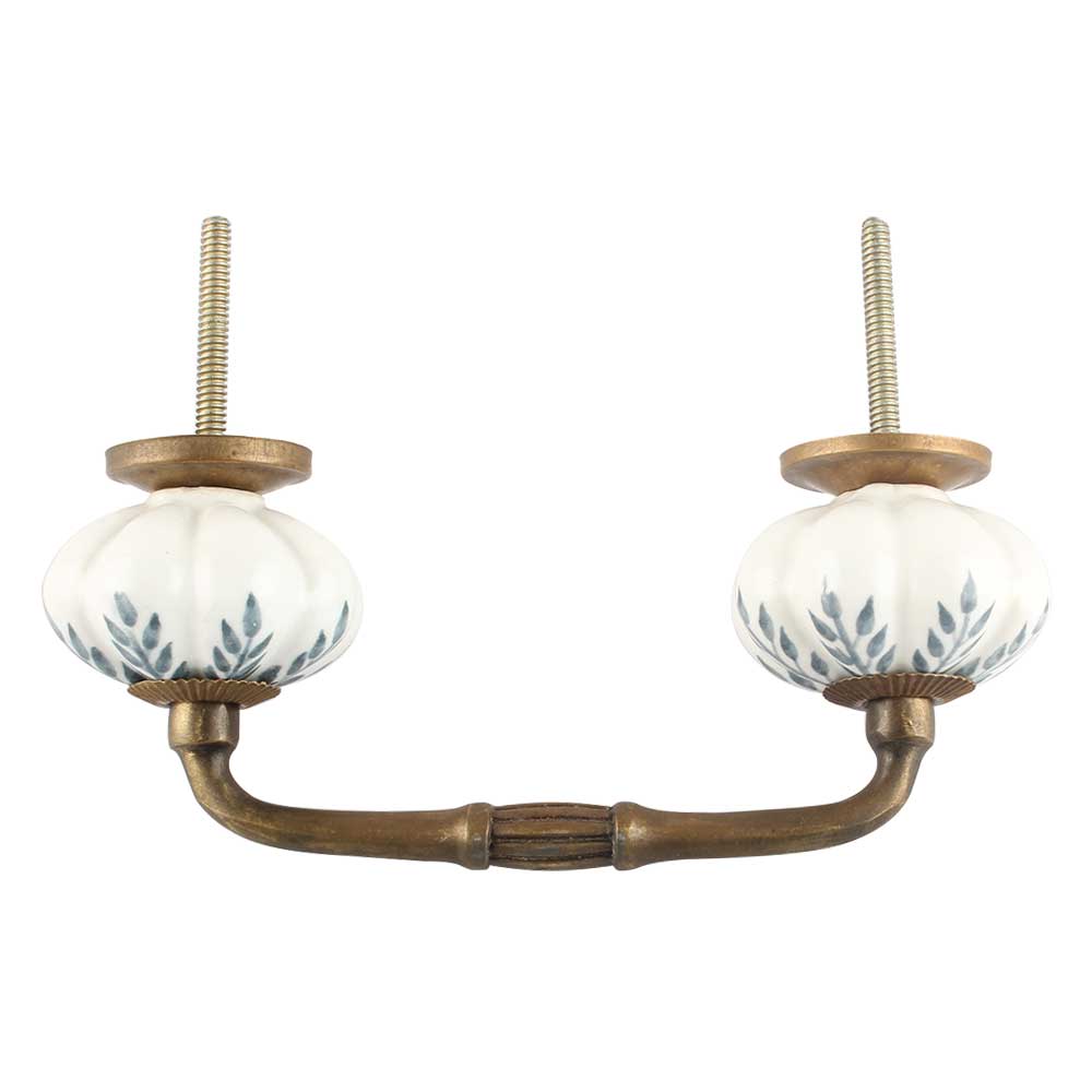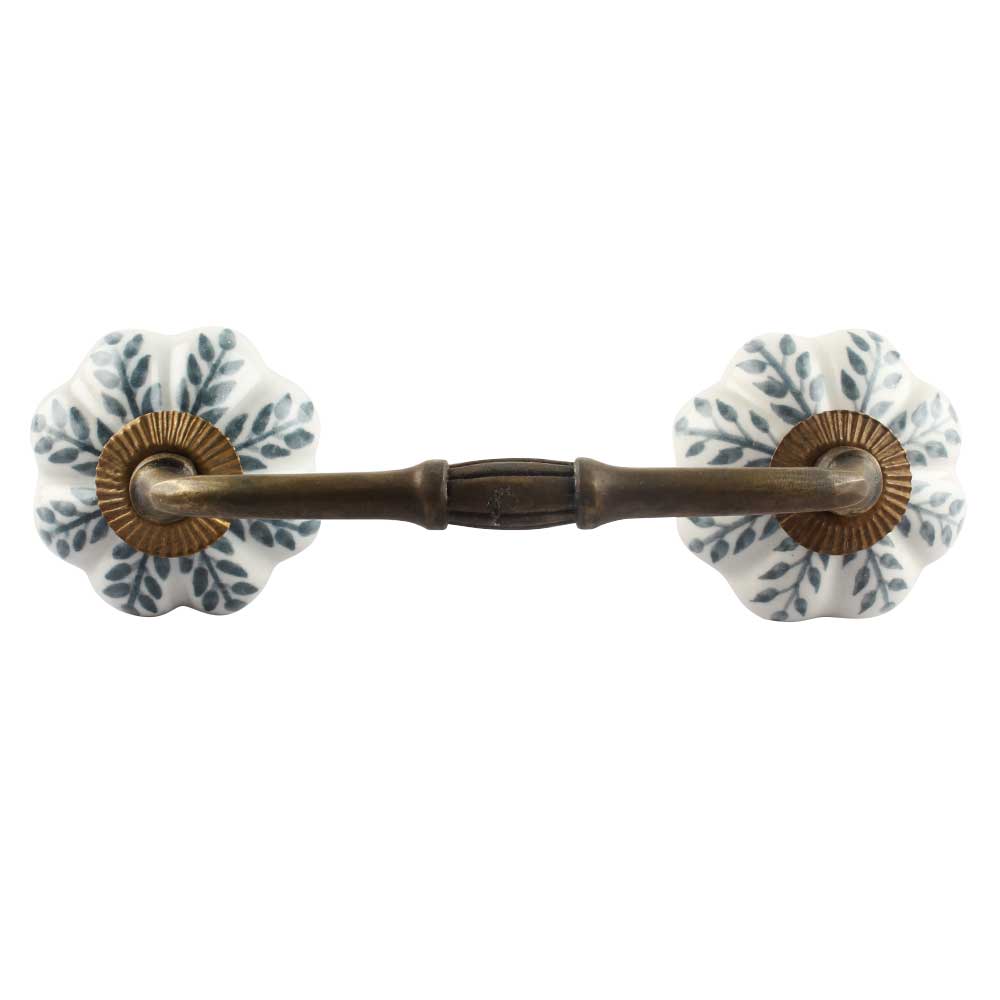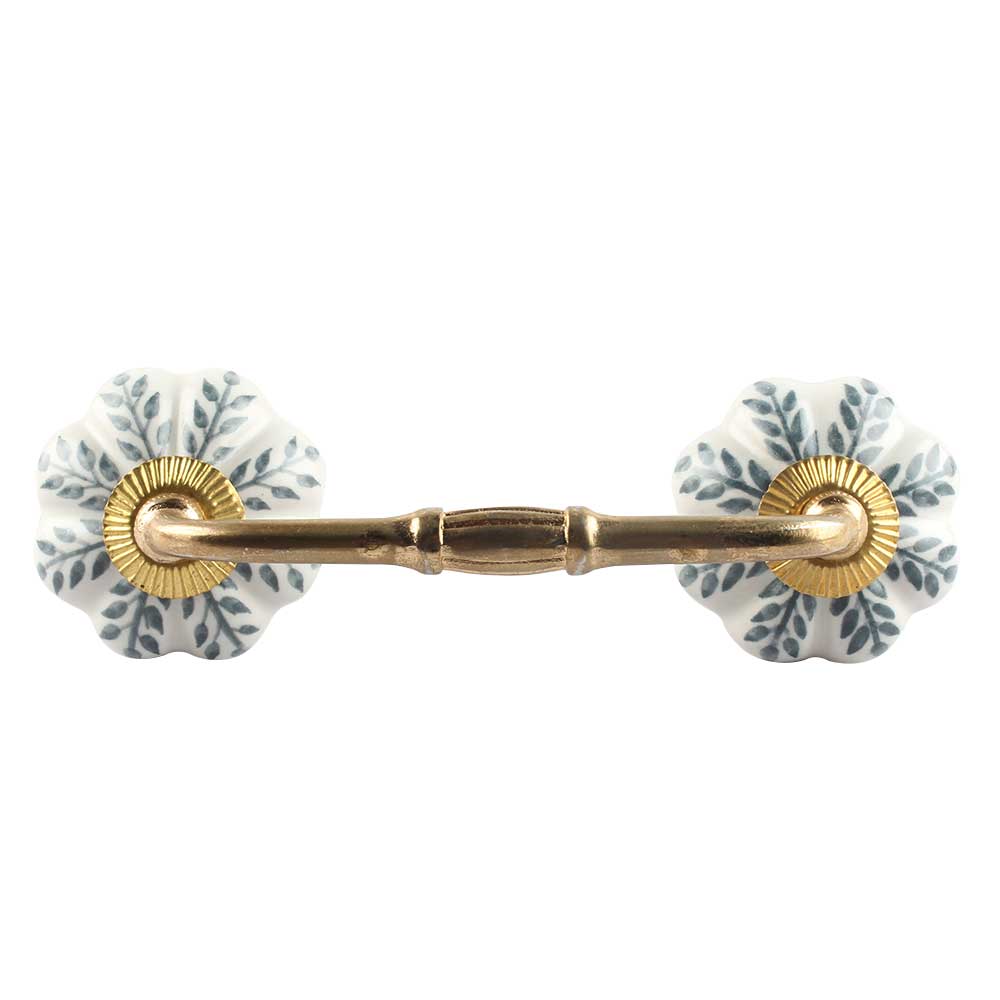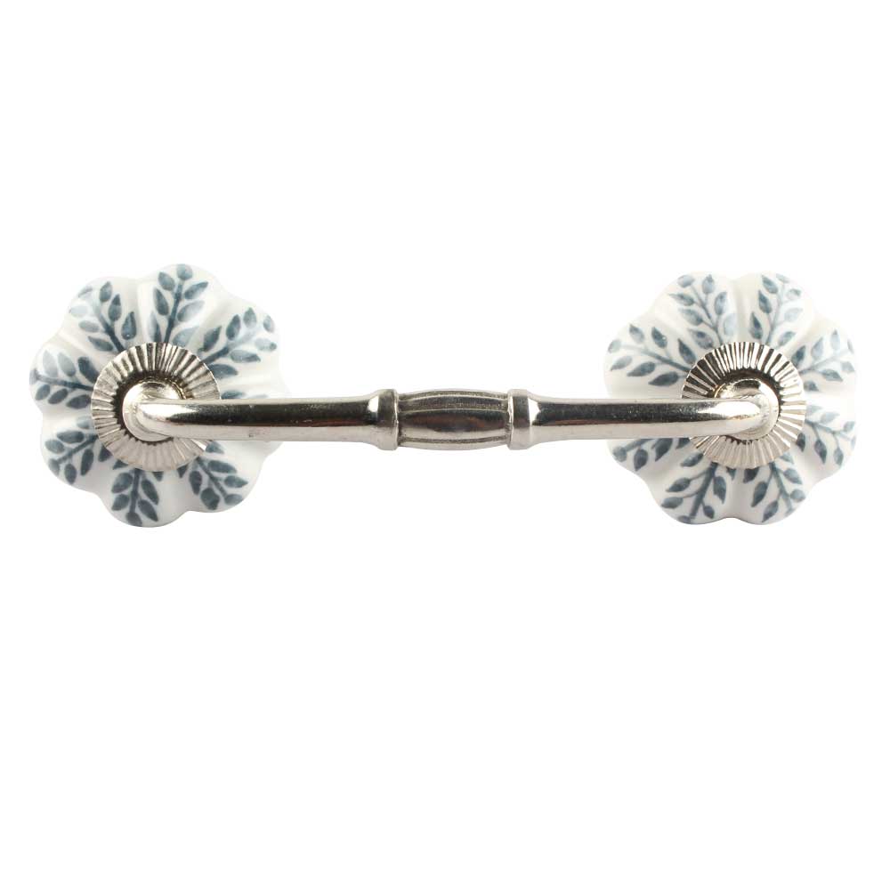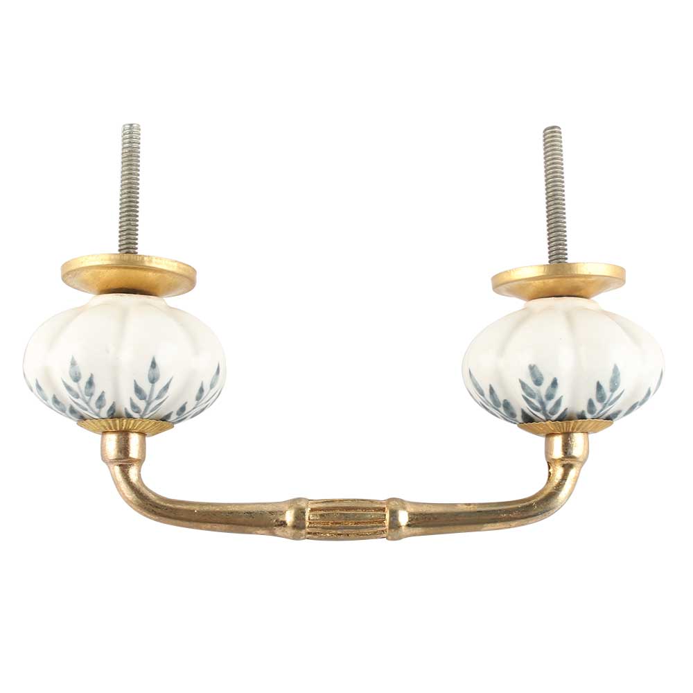 White Base Grey Leaf Ceramic Melon Bridge Handle. Ideal for Drawer, Dresser, Cabinet, Wardrobe, Cupboard and Almirah etc.