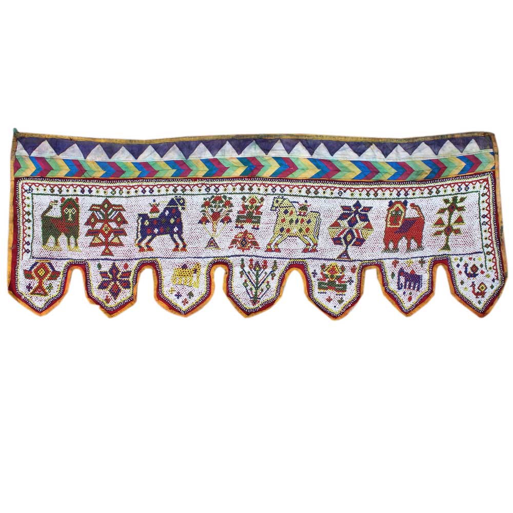 This toran is often used in Indian households during religious ceremonies and festivals. It is believed to bring good luck, positivity, and protection into the home. The animal motifs, which may feature elephants, lions, or peacocks, carry symbolic meanings of strength, grace, and prosperity. The beaded design adds a layer of sophistication and style, making it a perfect fit for both traditional and modern décor.