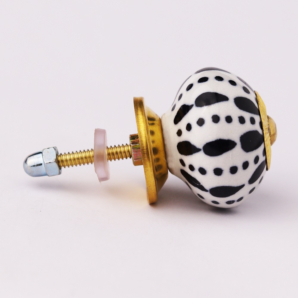 In addition to its visual appeal, the White & Black Ceramic Designer Knob is easy to grip and use. Its rounded shape offers a comfortable hold, while its sturdy construction ensures a smooth and reliable performance every time. Whether you are opening a cabinet door, drawer, or dresser, this knob provides a functional solution that enhances your overall experience.
