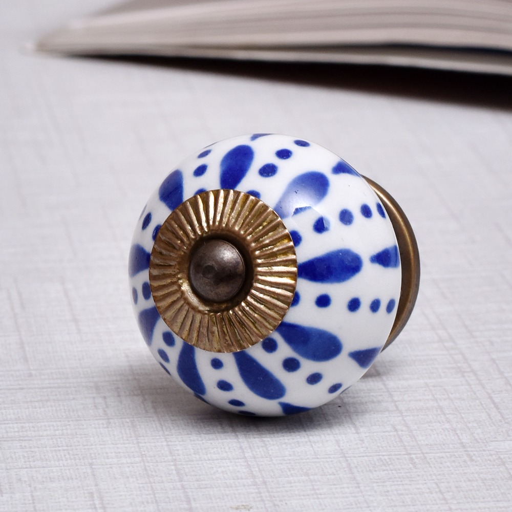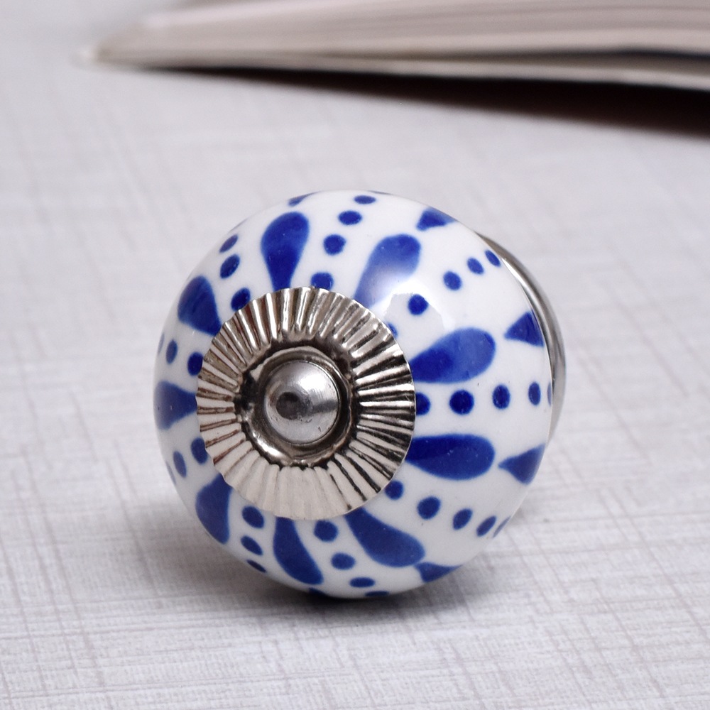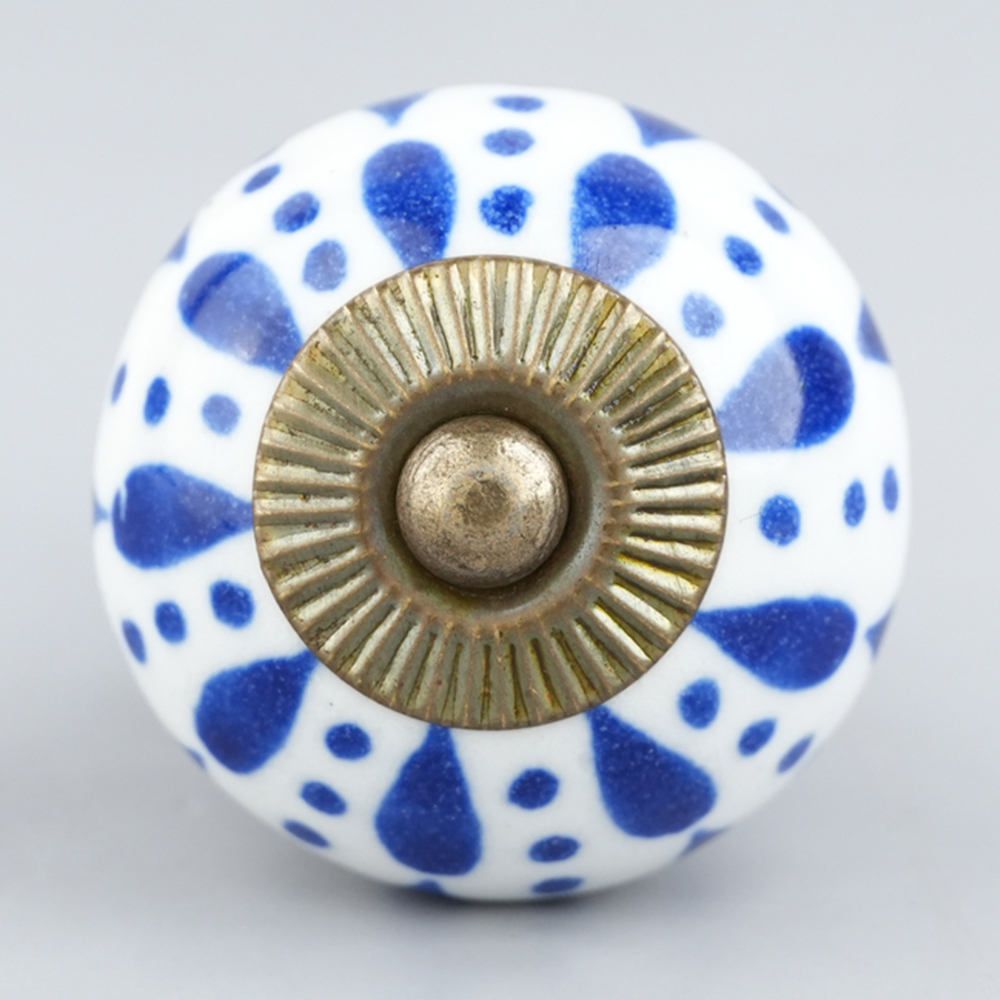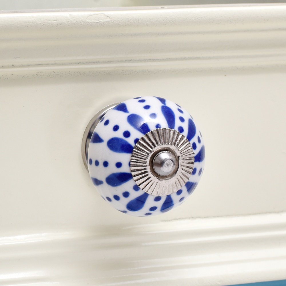 White & Blue Ceramic Floral Knob With Size 1.5 Diameter. Ideal for Drawer, Dresser, Cabinet, Wardrobe, Cupboard and almirah
