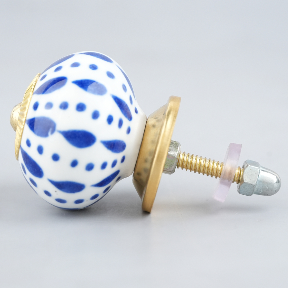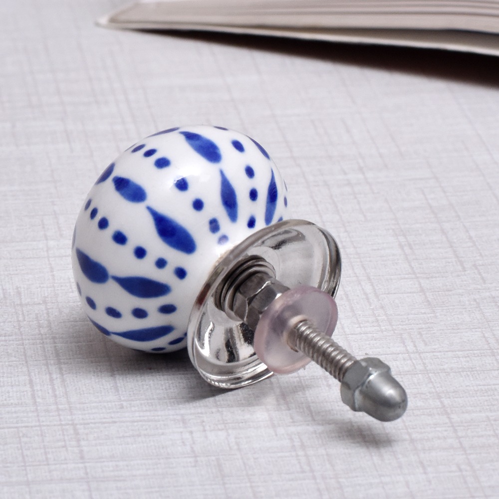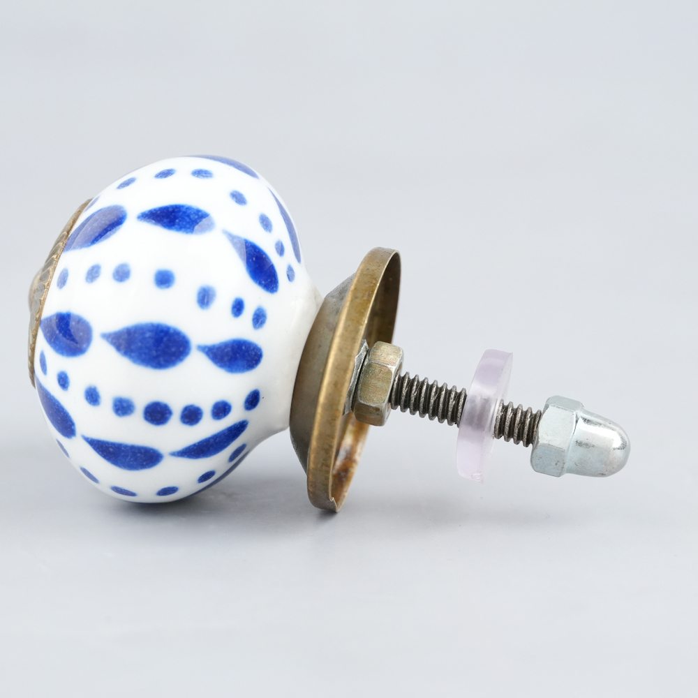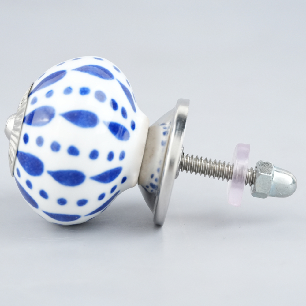 White & Blue Ceramic Floral Knob With Size 1.5 Diameter. Ideal for Drawer, Dresser, Cabinet, Wardrobe, Cupboard and almirah