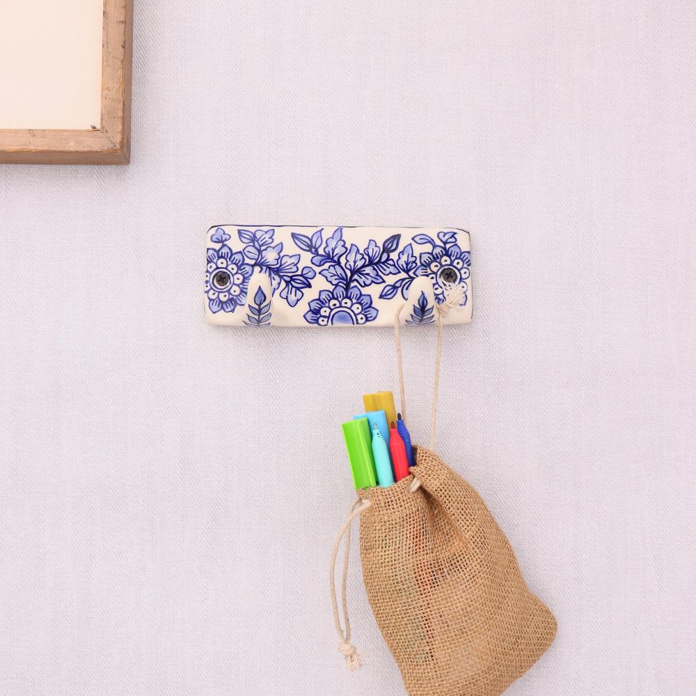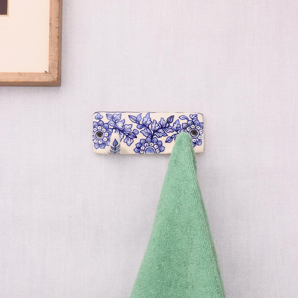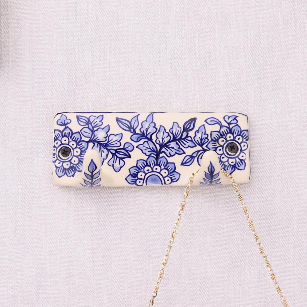 White Blue Floral Pattern Mounted Wall Hook Adhesive+(Screw). This Hook is Strong Enough to Hold Your Cloths, Keys, Tea Cups, Coffee Mugs, Hand Towels Etc.