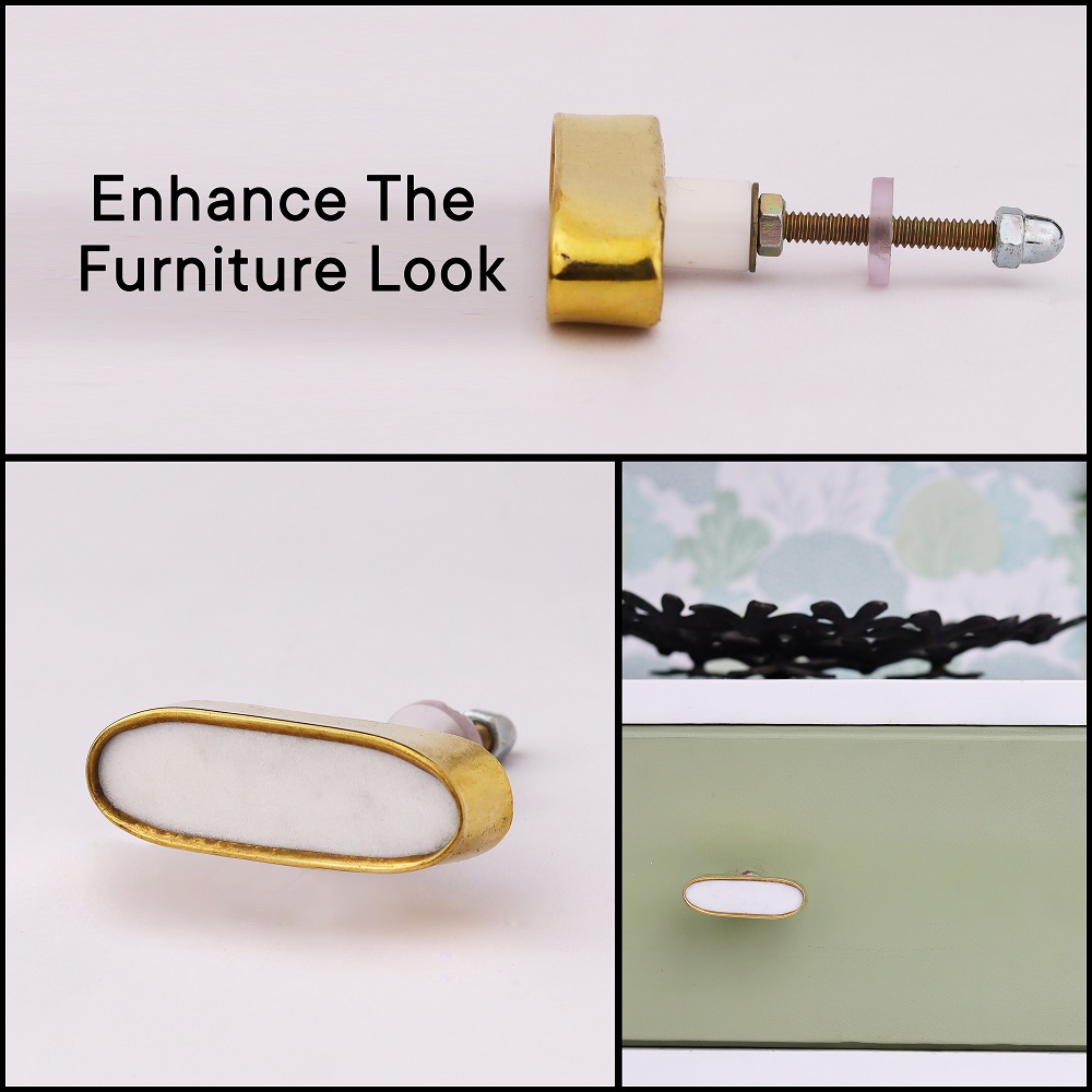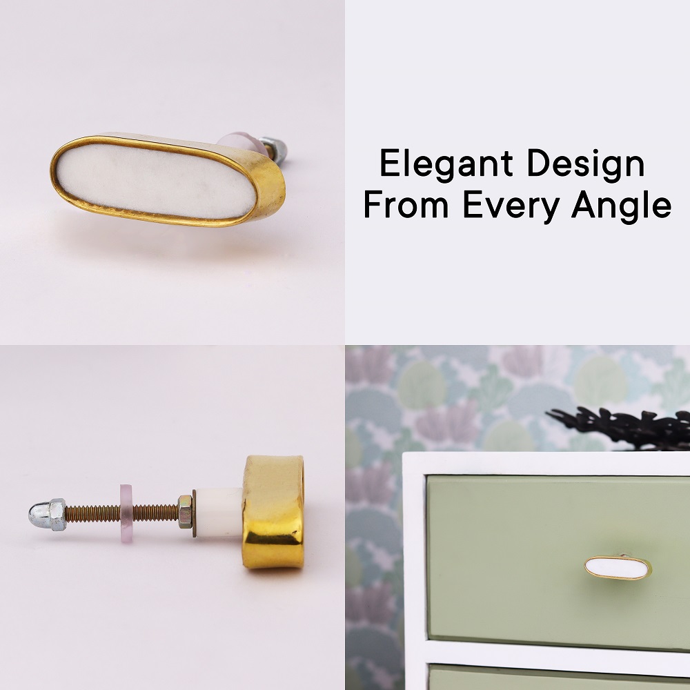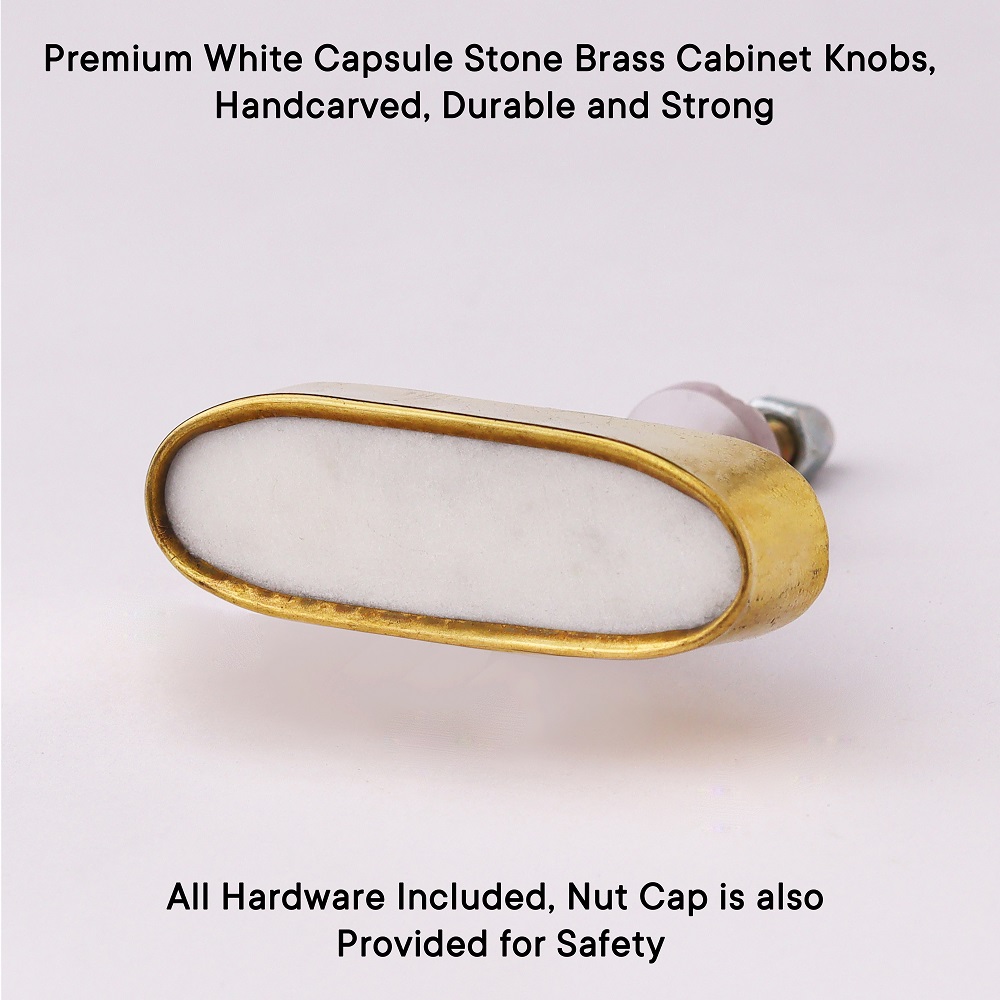 The White Capsule Stone Brass Cabinet Knobs are designed to add a touch of modern luxury to your home. Their unique materials and sleek design make them stand out as a functional yet decorative detail that elevates the look of your furniture.