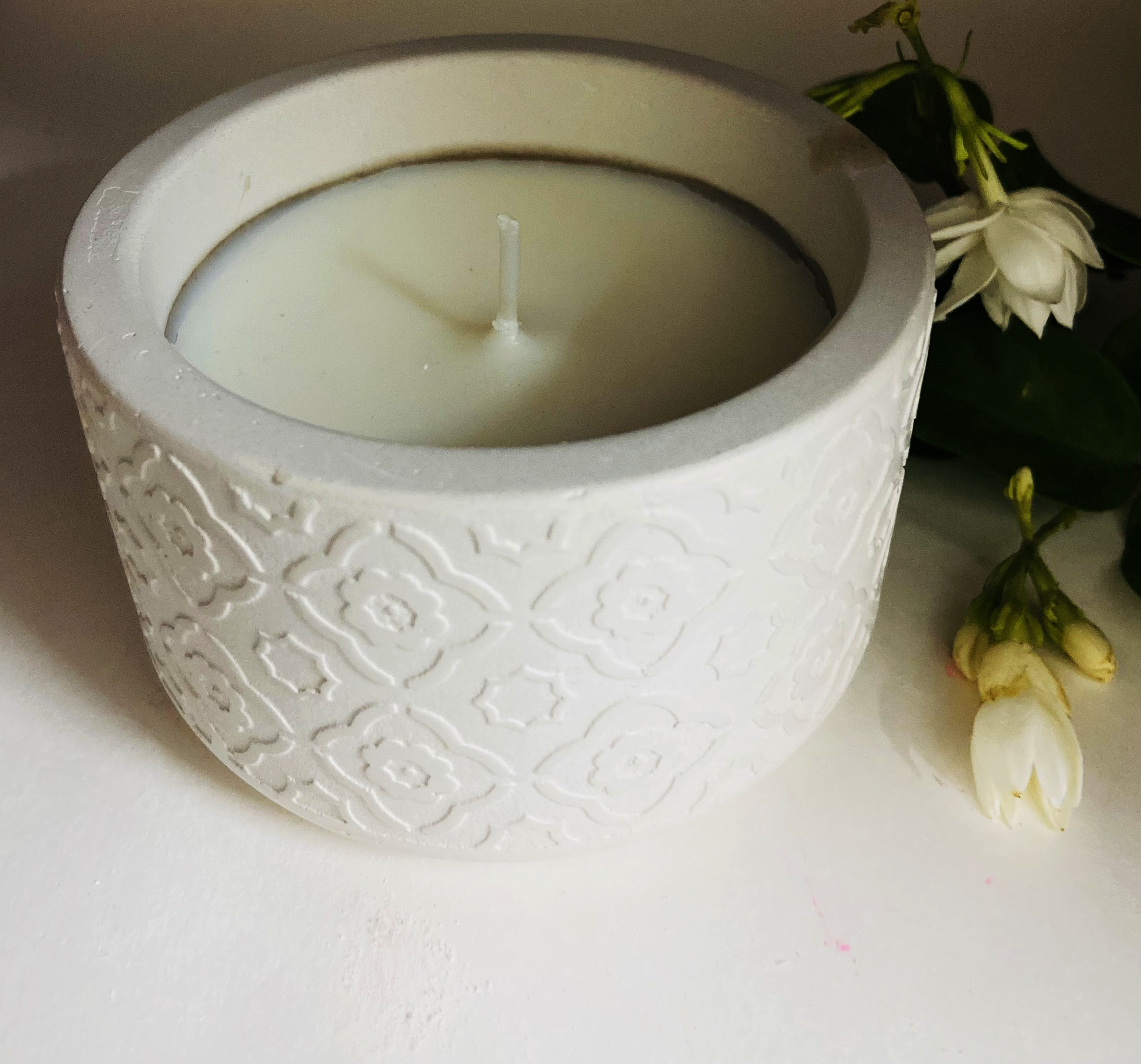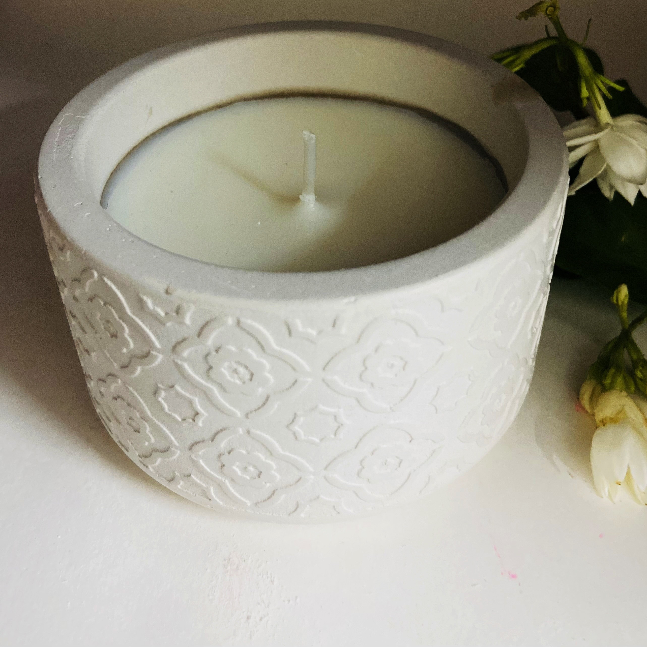 Cemented Candle holder with soya wax candle. A perfect gift for housewarming party, home decor and for festive seasons.