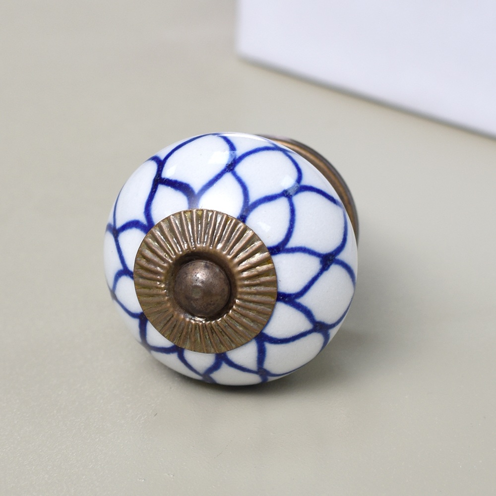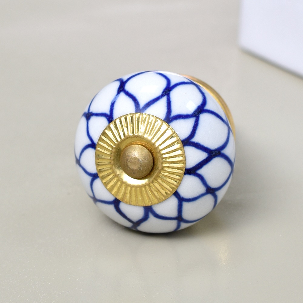 Enhance the aesthetic of your furniture with our exquisite Ceramic Round Knob in a pristine white and blue finish. This stunning knob is not just a functional piece but also a work of art, handcrafted by skilled Indian artisans who have honed their craft for generations. The intricate flower design adds a touch of elegance and charm to any drawer, dresser, cabinet, wardrobe, cupboard, or almirah. Our Ceramic knob is the epitome of luxury and craftsmanship, making it the perfect choice for both residential and commercial spaces. It's not just handles for cabinets and drawers, it's a statement of your impeccable taste. Whether you're looking to upgrade your kitchen handles for cabinets or add a touch of opulence to your office, hotel, cafe, or shop, this knob is the ideal choice. Moreover, it's an ideal gift for your loved ones on special or festive occasions. Show them you care by gifting them a piece of Indian craftsmanship that exudes beauty and sophistication.