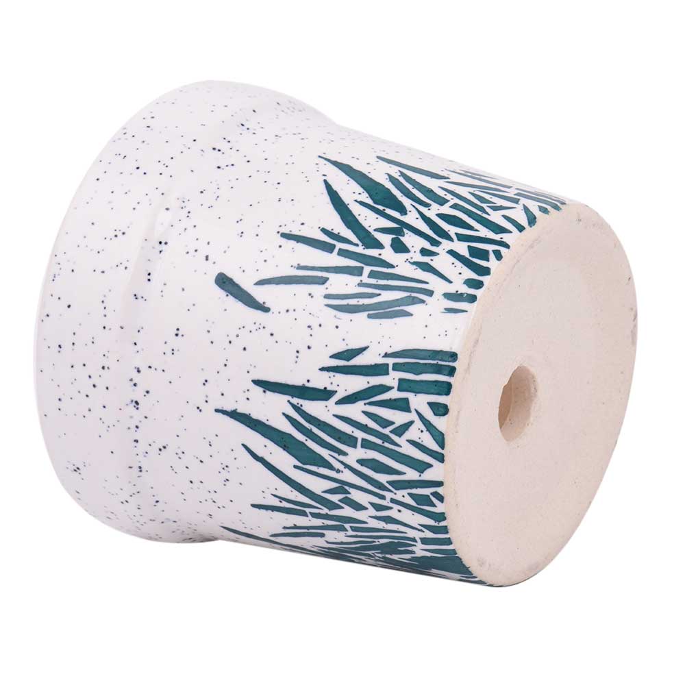 White Ceramic Pots For Indoor Plants With Hand Painted Leaves that is extra decorative that helps to beautify your home, office and corporate offices, shops and other commercial places. Gift for your Friends , relatives and colleagues.