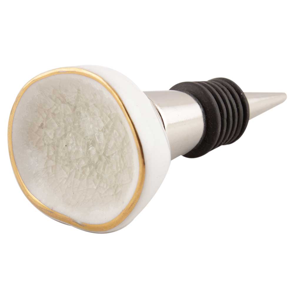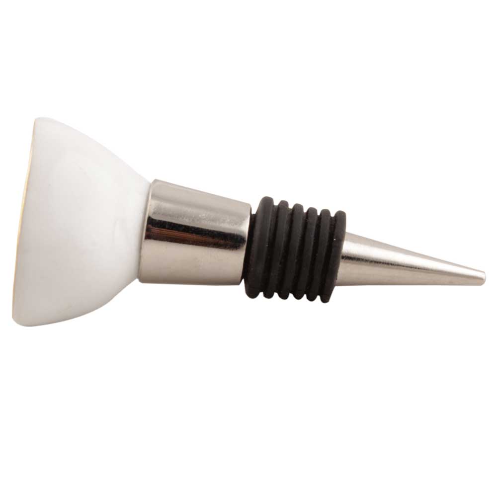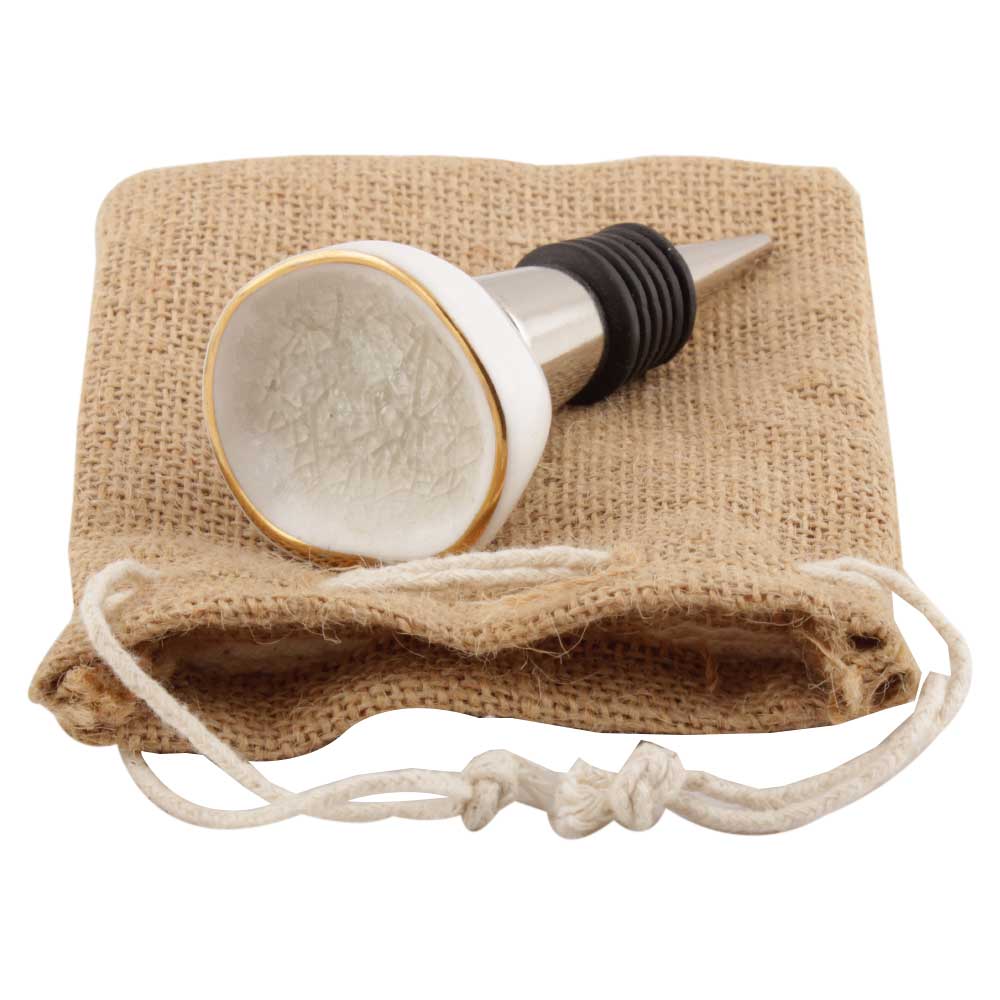 White Ceramic Wine Stopper. Zinc Alloy Wine Bottle Stopper with Attractive Jute Bag Packaging.