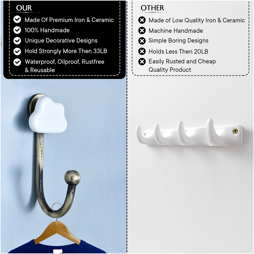 1. Practical & Kid-Friendly 2. Unique Vintage-Inspired Look 3. Built to Last 4. Naturally Hygienic & Easy to Maintain Install several cloud hooks in a staggered pattern to mimic a “cloud wall”—great for kids' spaces or entryways with a creative touch.
