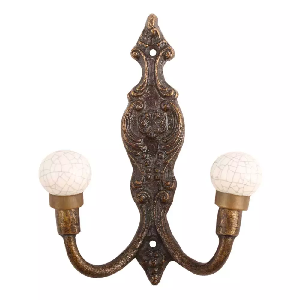 White Crackle Ceramic Iron Hook. When Put on Wall or Cabinet It Gives A Sturdy Look. This Hook is Strong Enough to Hold Your Cloths, Keys, Tea Cups, Coffee Mugs, Hand Towels Etc