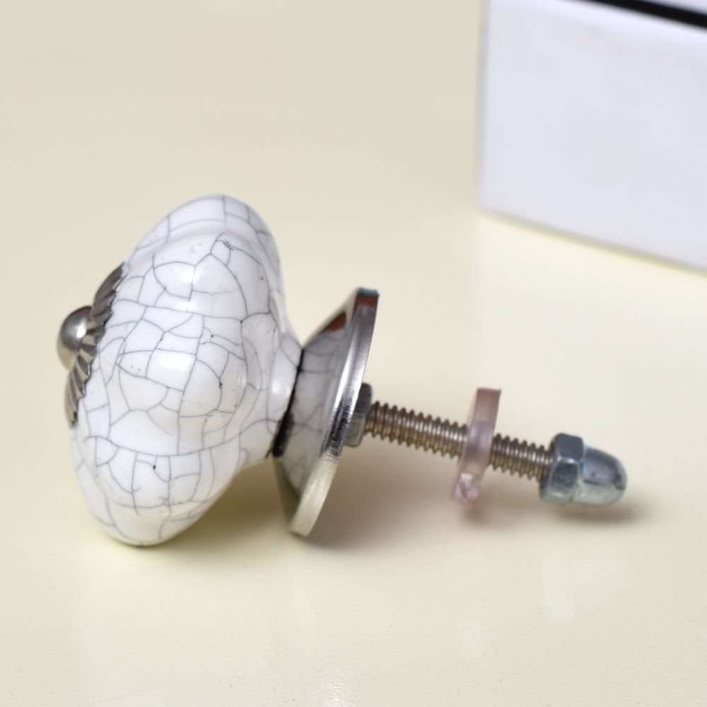 The combination of the melon shape and white crackle finish ensures that this knob remains a timeless addition to any home. Its vintage appeal works beautifully in both modern and classic interiors.
