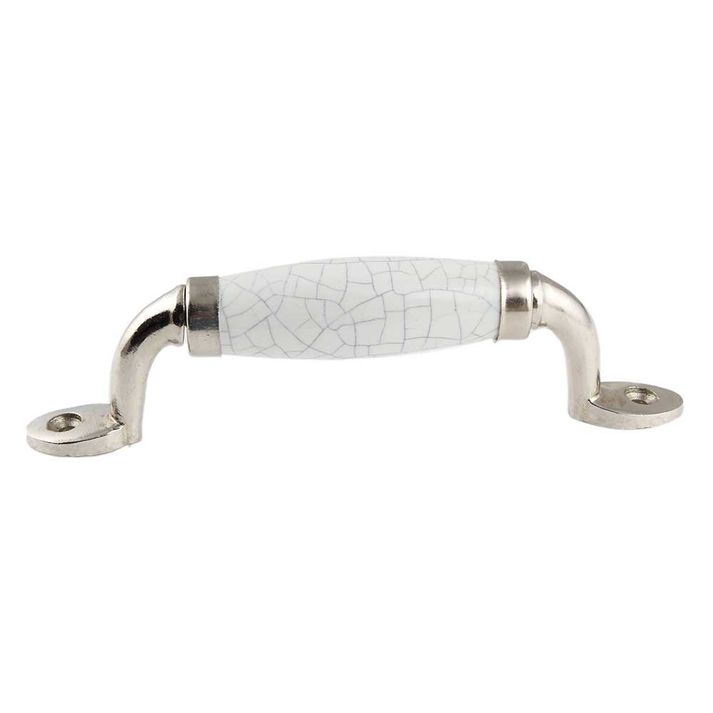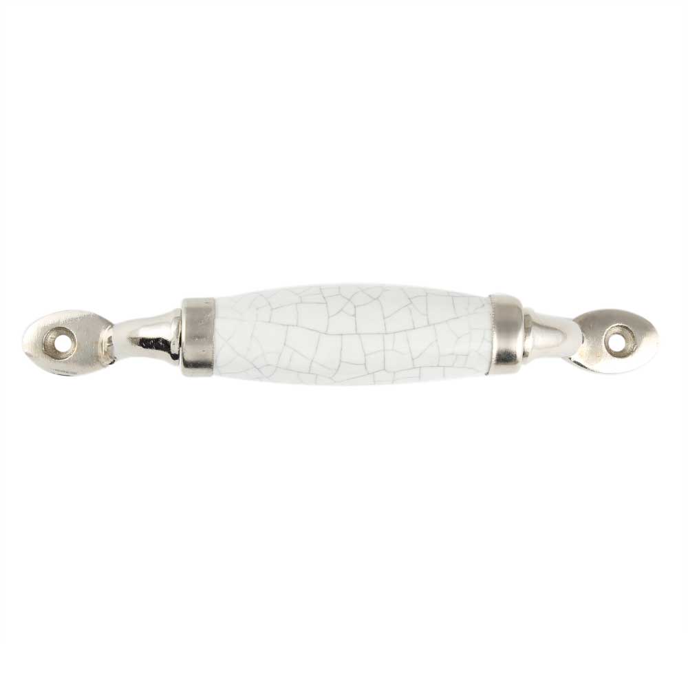 White Crackle Small Ceramic Silver Door Handles. Ideal for Drawer, Dresser, Cabinet, Wardrobe, Cupboard and Almirah.