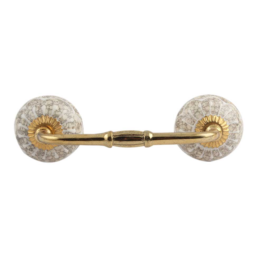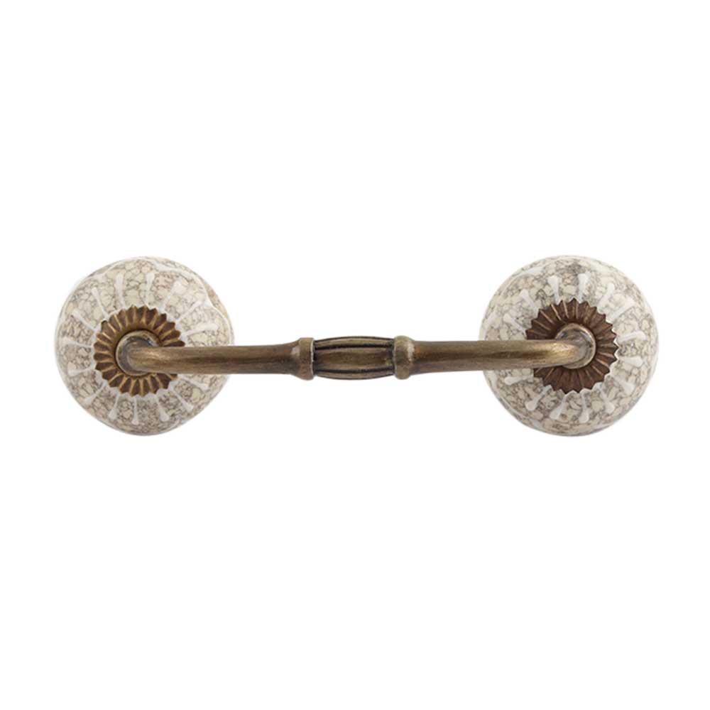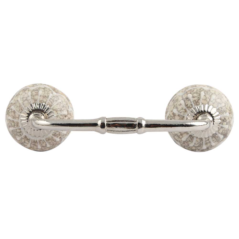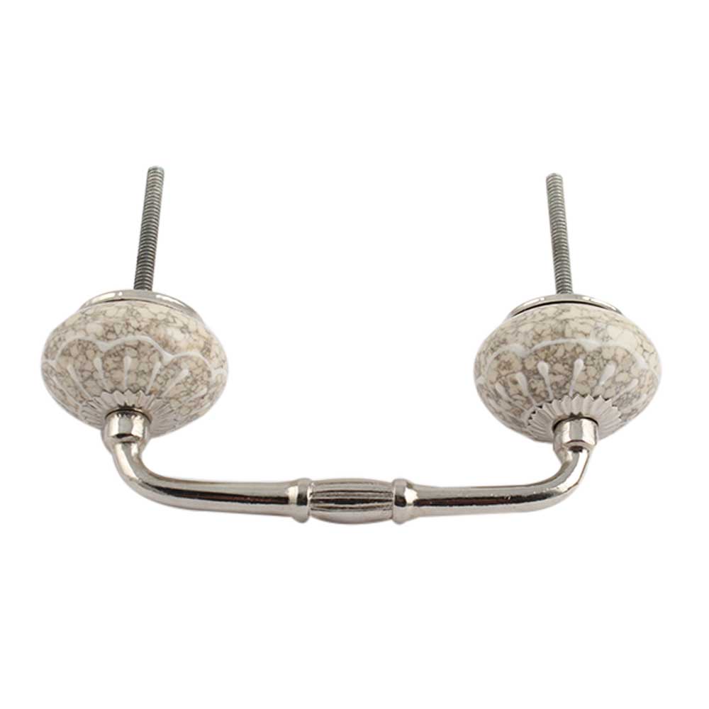 White Crackle Wheel Ceramic Bridge Cupboard Handle. Ideal for Drawer, Dresser, Cabinet, Wardrobe, Cupboard and Almirah.