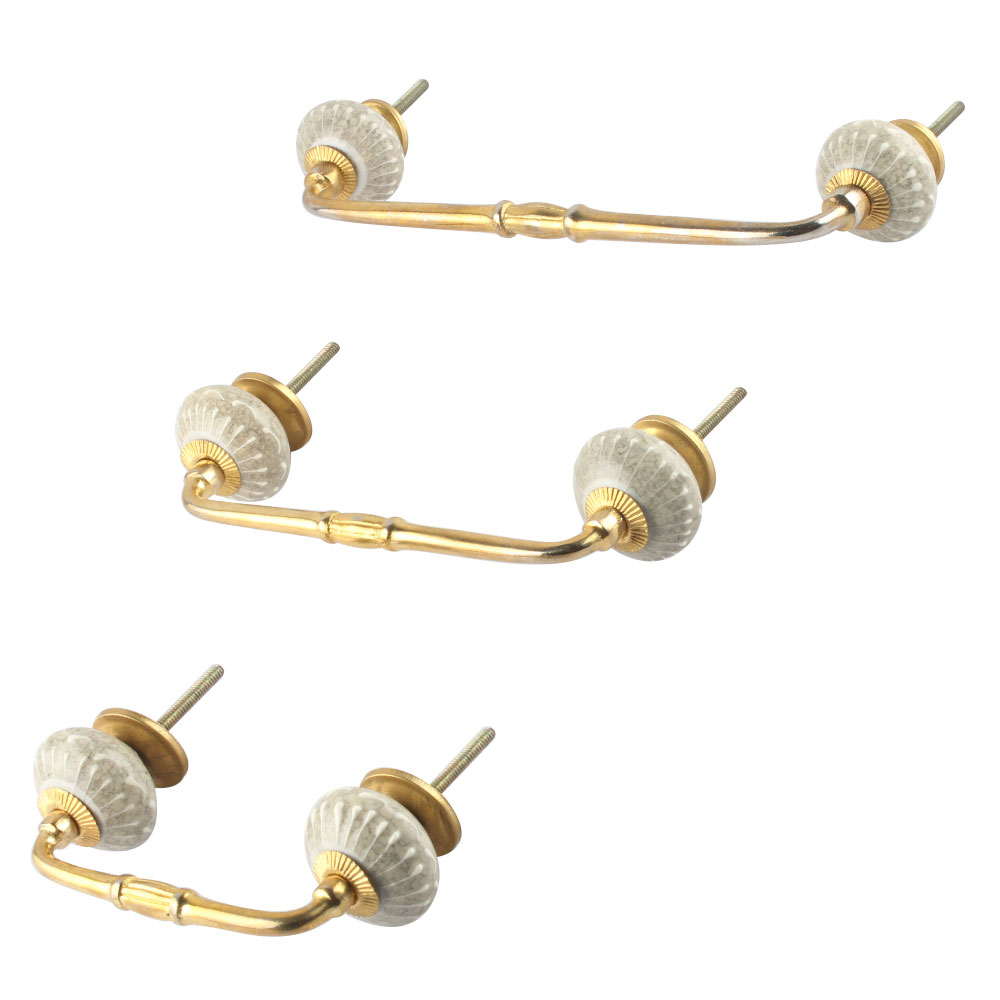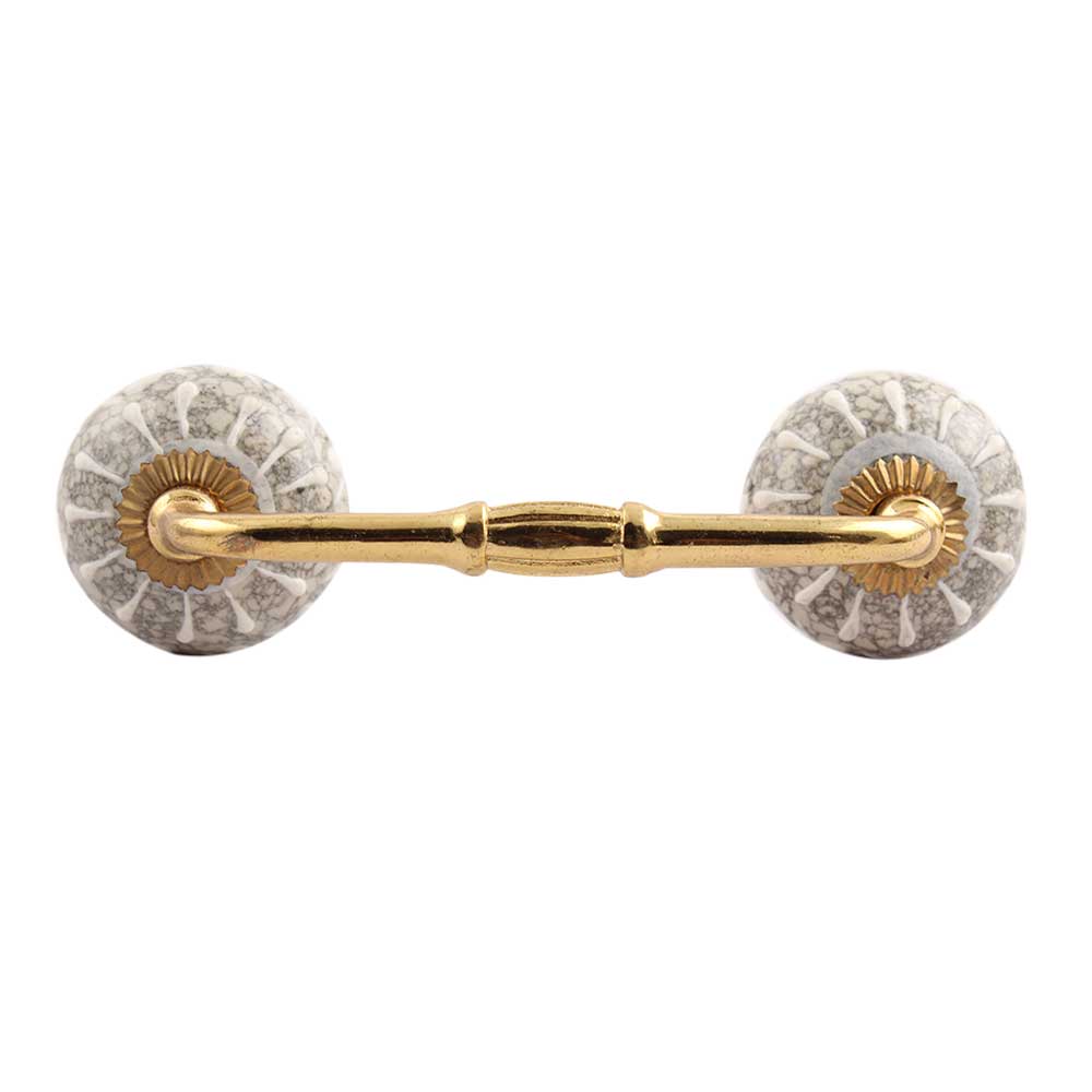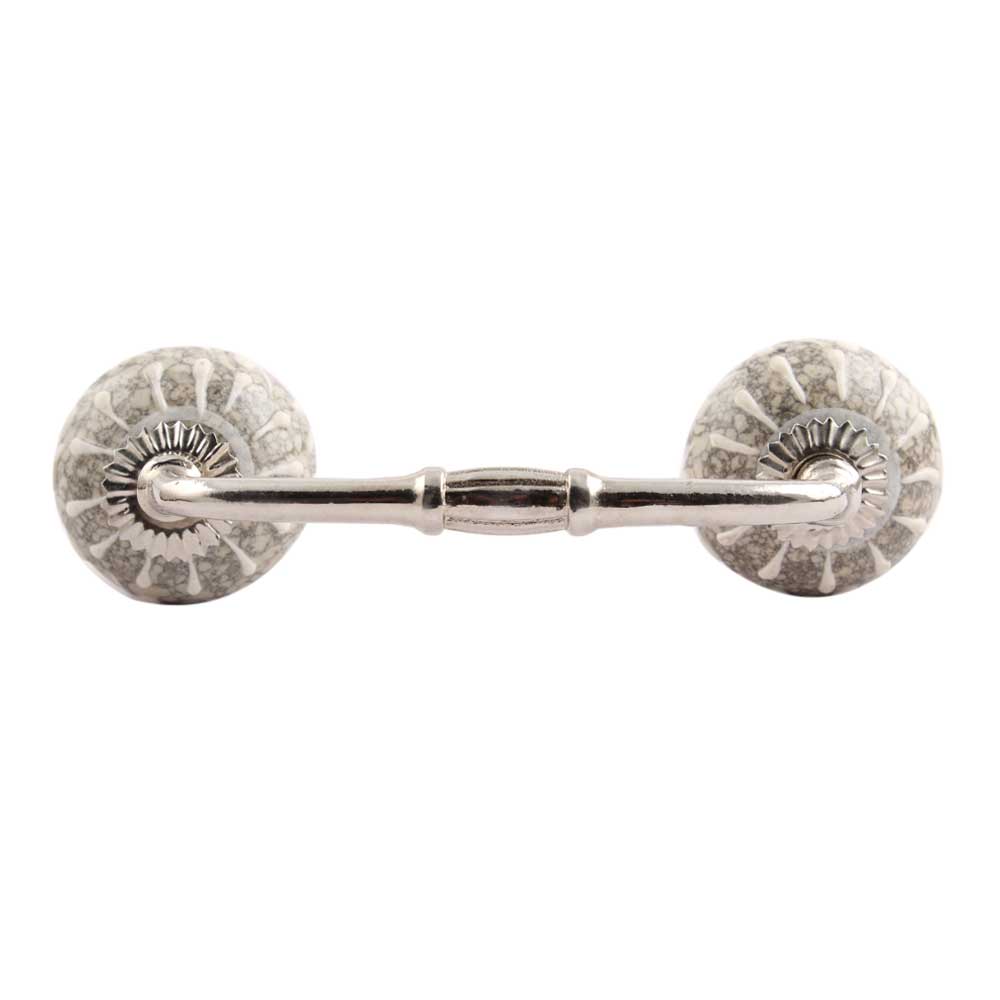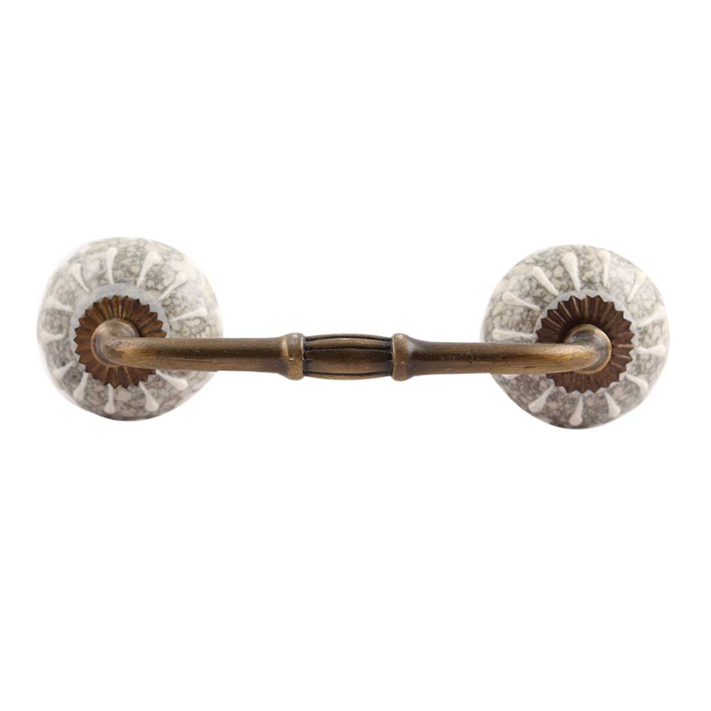 White Crackle Wheel Ceramic Bridge Handle. Ideal for Drawer, Dresser, Cabinet, Wardrobe, Cupboard and Almirah.