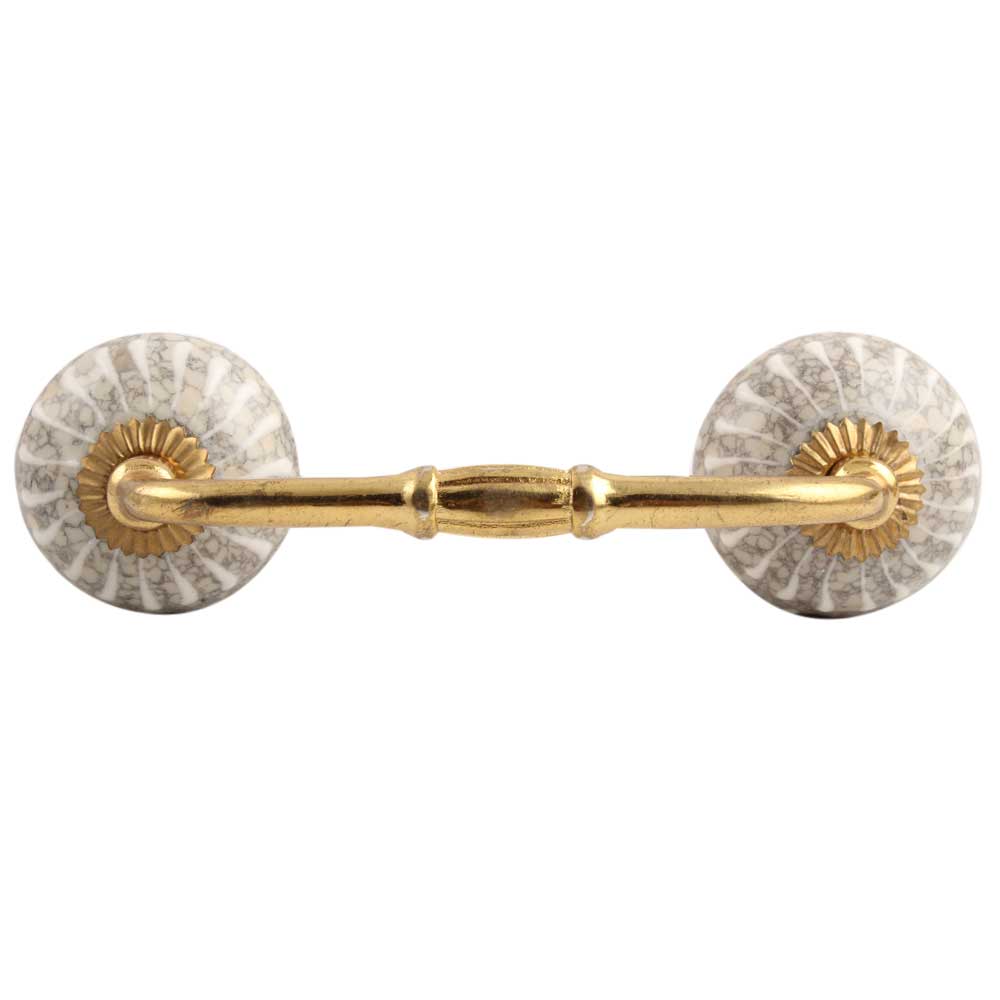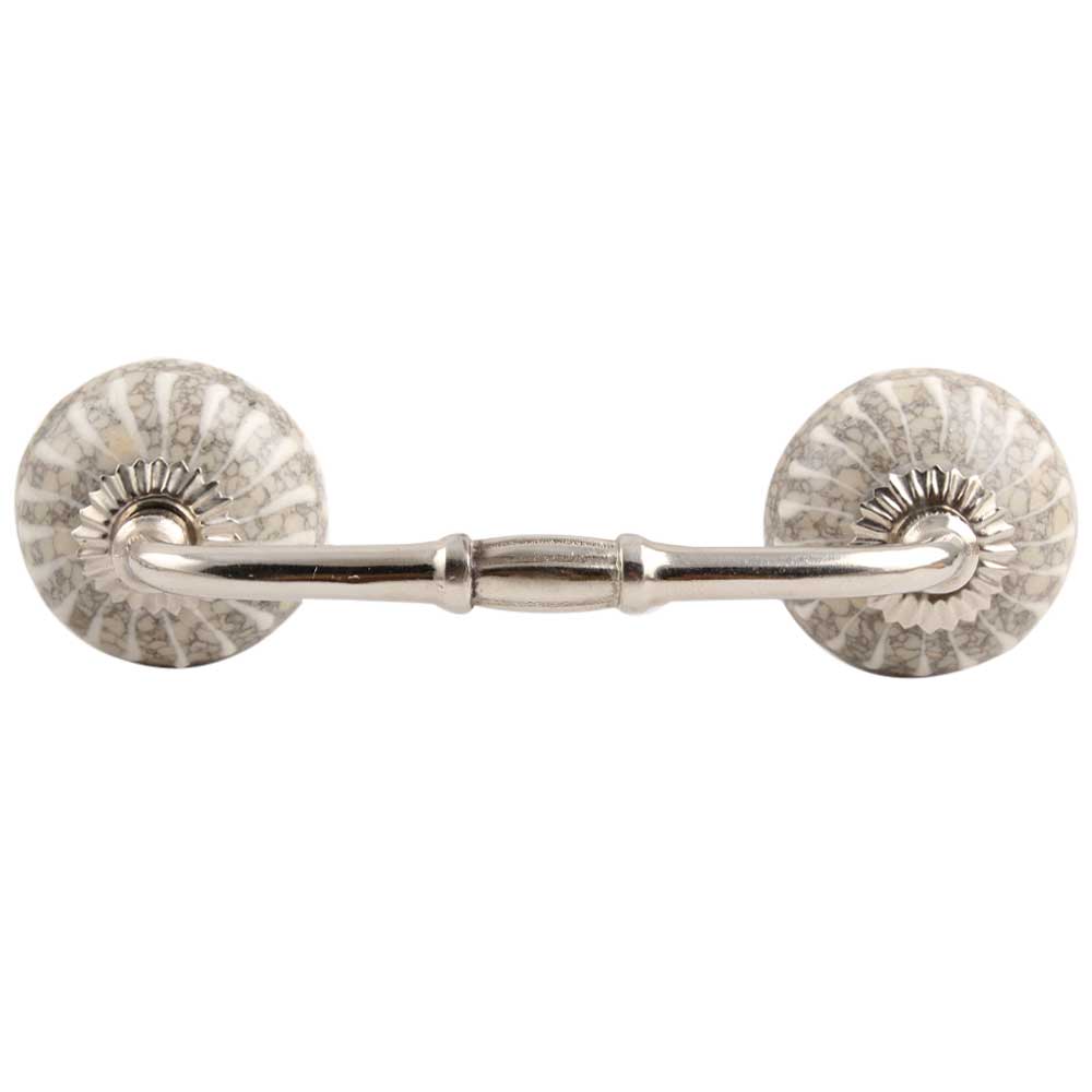 White Crackle Wheel Ceramic Bridge Handle .Ideal for kitchen Cabinet, kitchen Drawer, Dining Room, Bed Room, Chest Drawer, Dressing Table, Almirah.