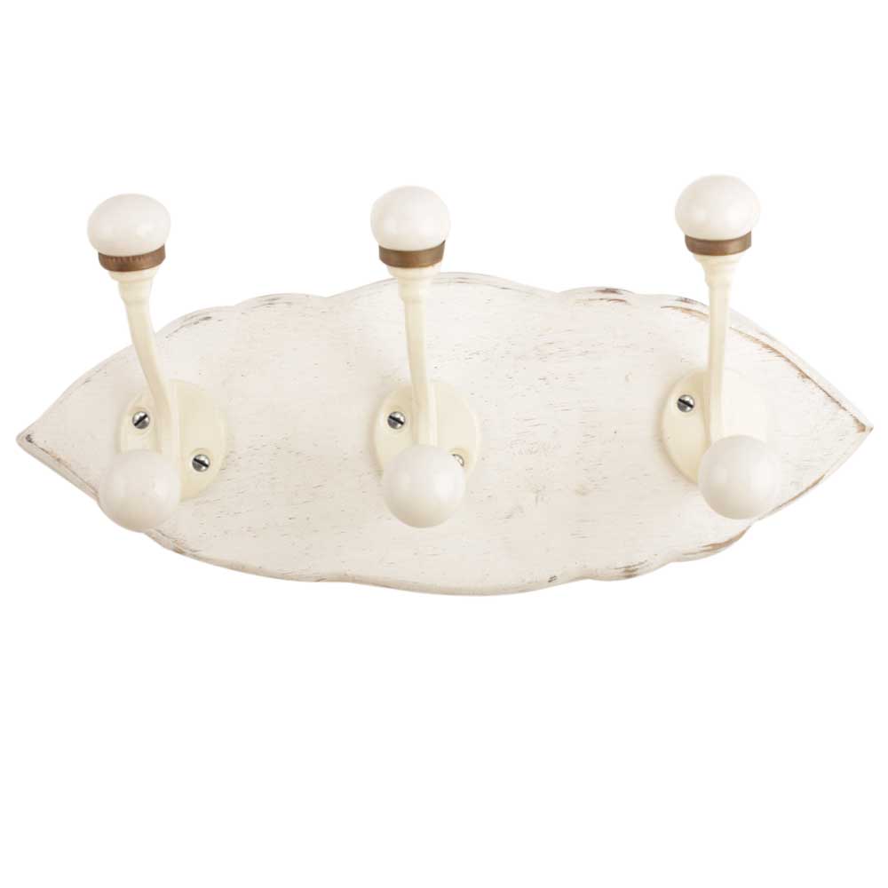White Cream Double Loop Ceramic Iron Wooden Hooks. A Perfect Complement to the Soft Tone of the Wood are these White Traditional Hat & Coat Hook Made of Genuine Porcelain and Brass. It can be use to Hang Jewellery, Leashes, Towels, Scarves, Light Weight Sweaters, Caps Etc.