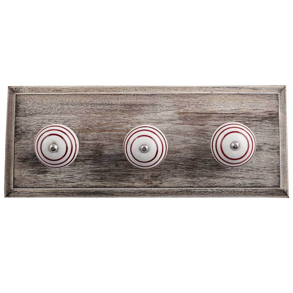 White Dark Pink Strip Wooden Hooks. A Perfect Complement to the Soft Tone of the Wood are these White Traditional Hat Coat Hook Made of Genuine Porcelain and Brass. It can be use to Hang Jewellery, Leashes, Towels, Scarves, Light Weight Sweaters, Caps Etc.