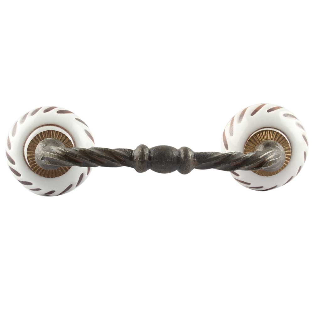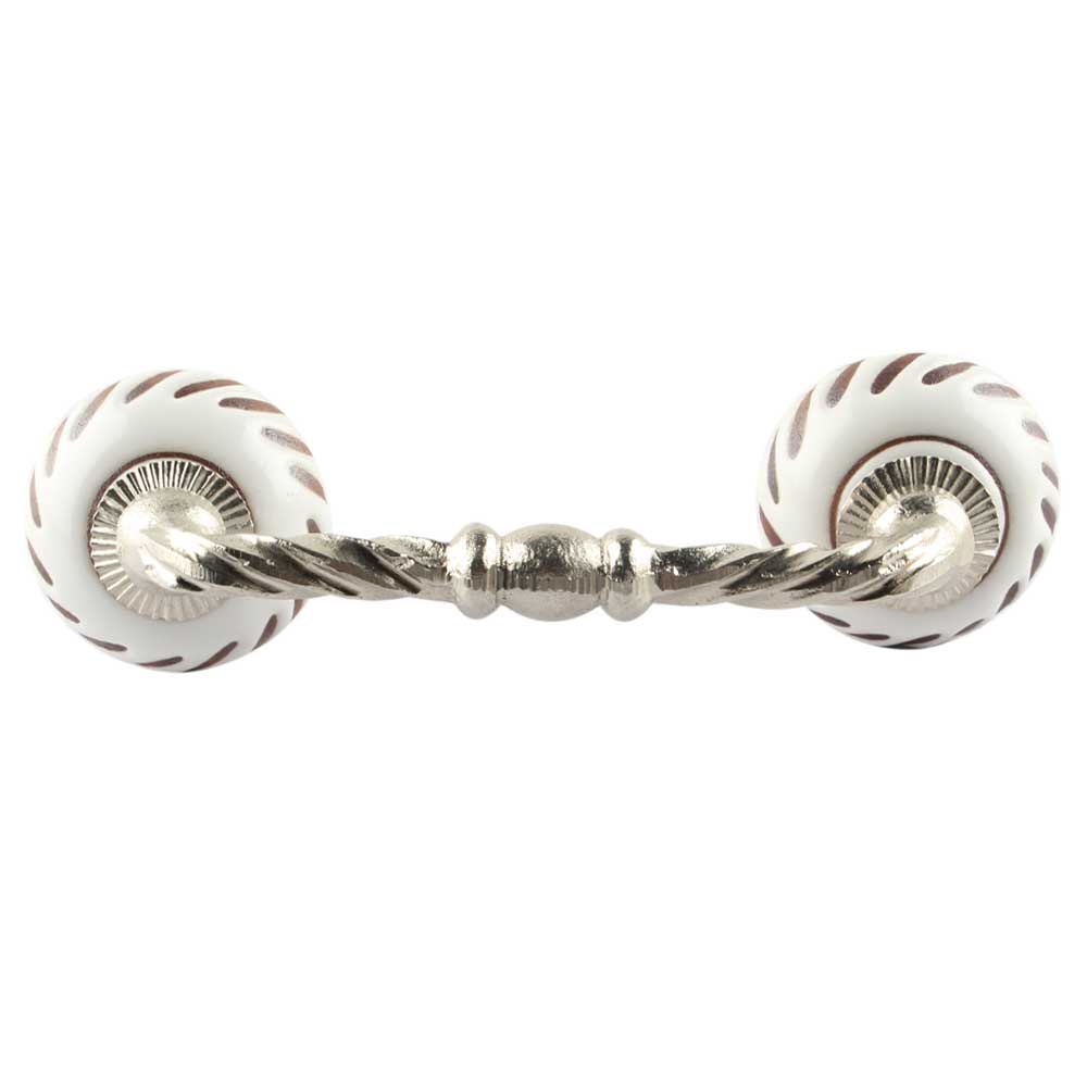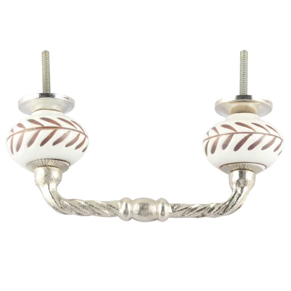 White Etched Ceramic Floral Bridge Handles. Ideal for Drawer, Dresser, Cabinet, Wardrobe, Cupboard and Almirah etc.