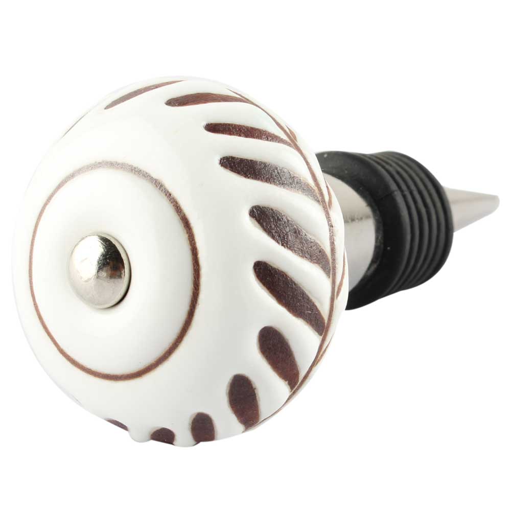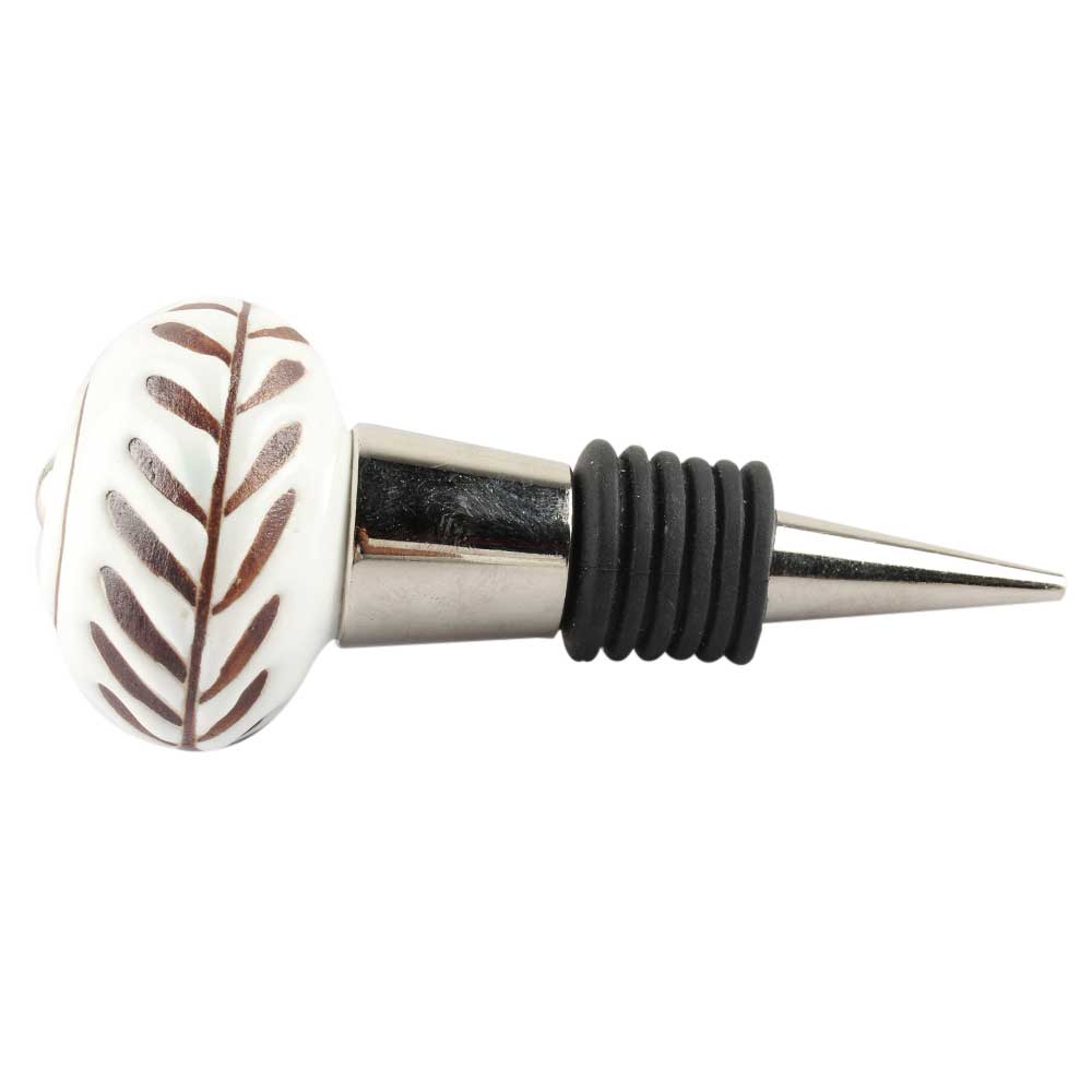 White Etched Ceramic Floral Wine Stopper. Zinc Alloy Wine Bottle Stopper with Attractive Jute Bag Packaging.